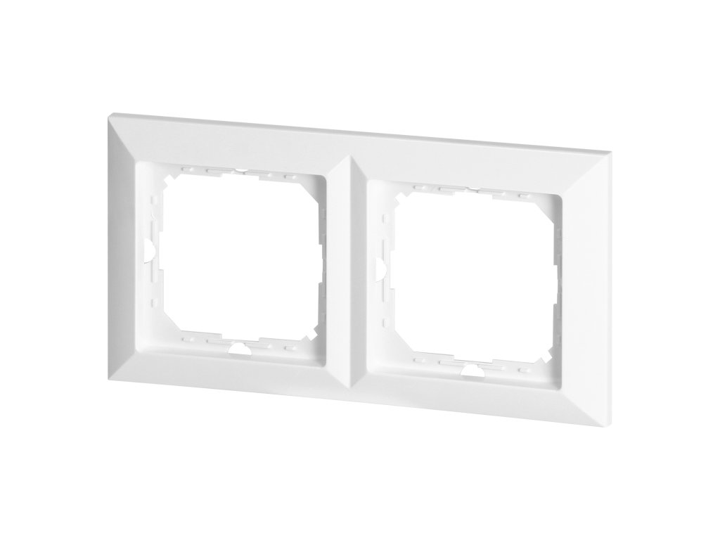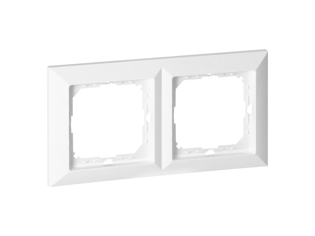 Moduláris sorozat szimmetrikus keretlappal (1-, 2-, 3-, 4-, 5-modulokhoz), amely lehetővé teszi a termék vízszintes és függőleges helyzetben történő felszerelését. A modern gyorscsatlakozó mechanizmus (a vezetékek közvetlenül a testbe tolva csatlakoznak) biztonságos és megbízható vezeték be- és kiszerelést biztosít. A csatlakozók hagyományos csavaros csatlakozásokkal vannak ellátva. A sorkapcsok belső kialakítása garantálja a 0,75 mm? és 2,5 mm? közötti vezetékek biztos csatlakozását. Erős és robusztus rögzítőlemezrács és kiváló minőségű, önbehúzó elemek stabil és biztonságos dobozba történő szerelést tesznek lehetővé. Speciális rugós elemek megkönnyítik a keret beillesztését a testbe.Dupla keret a Pearl sorozathoz. Beltéri használatra készült (IP20).