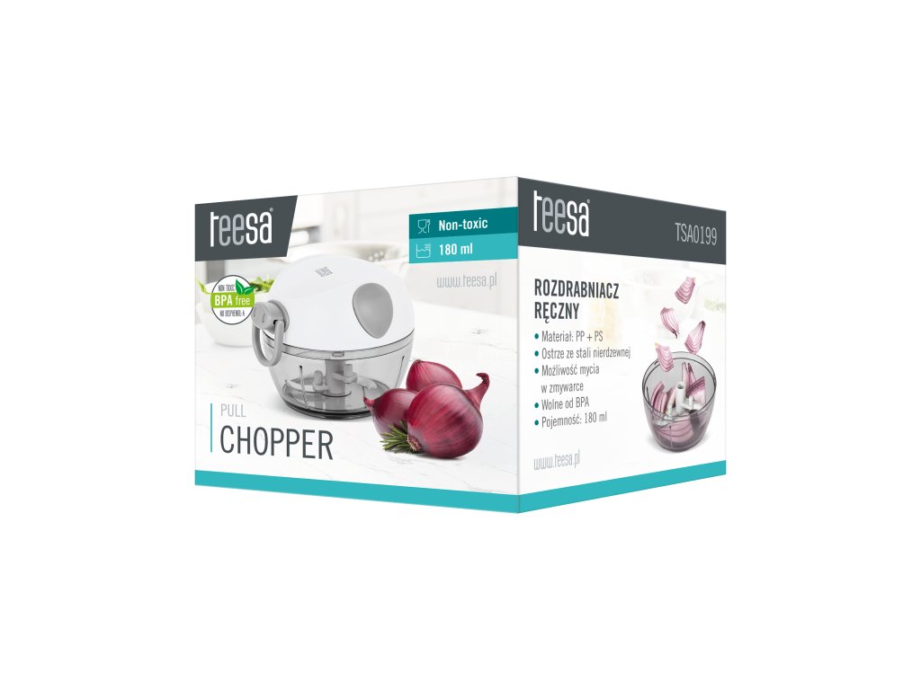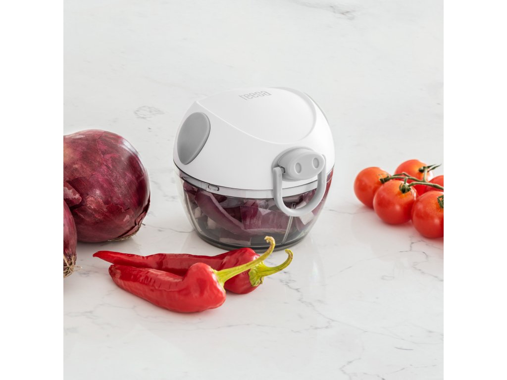 Használja a Teesa aprítót bárhol, ahol csak akarja! A készüléket úgy tervezték, hogy ne korlátozza Önt a tápkábel elérhetősége. A gyors és hatékony működés titka a zsinórral működő mechanizmus. Csak néhányszor húzza meg az automatikusan visszahúzódó zsinórt, hogy a pengék mozgásba lendüljenek, és minden hozzávaló megfelelően feldarabolódik.