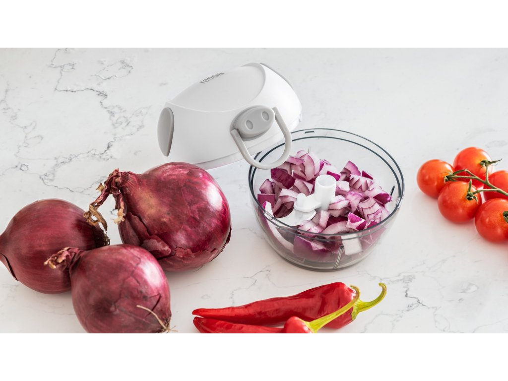 Szüksége van egy kis készülékre, amely segít gyorsan elkészíteni kedvenc salátáját vagy tojásos tésztáját? Vagy kempingezni készül és szüksége van egy hagymaszeletelőre? Válassza a Teesa 180 ml-es kézi mini aprítót, amely három különböző pozícióban elhelyezett pengével könnyedén aprítja a hagymát, sárgarépát, dióféléket vagy fűszernövényeket.