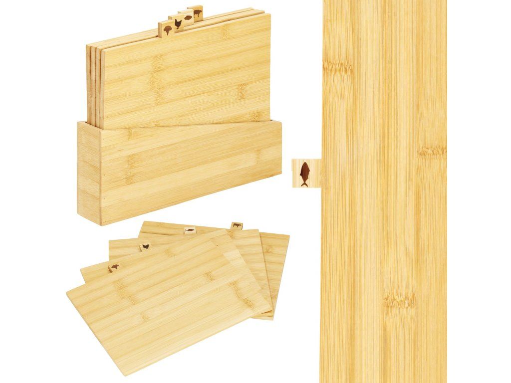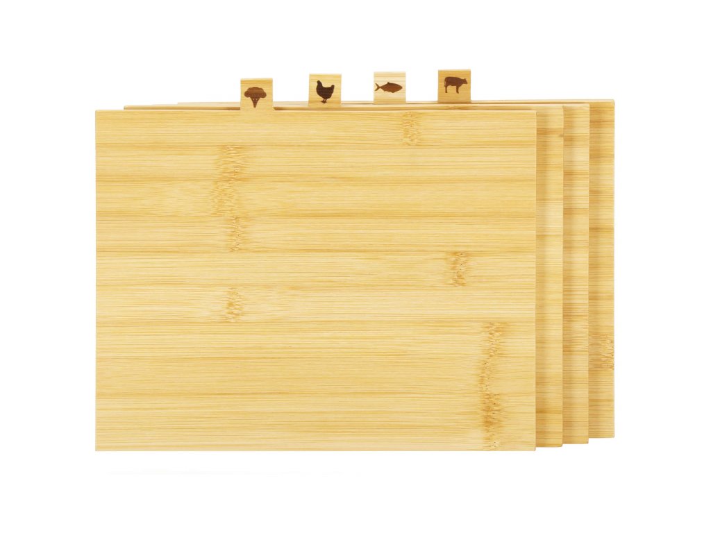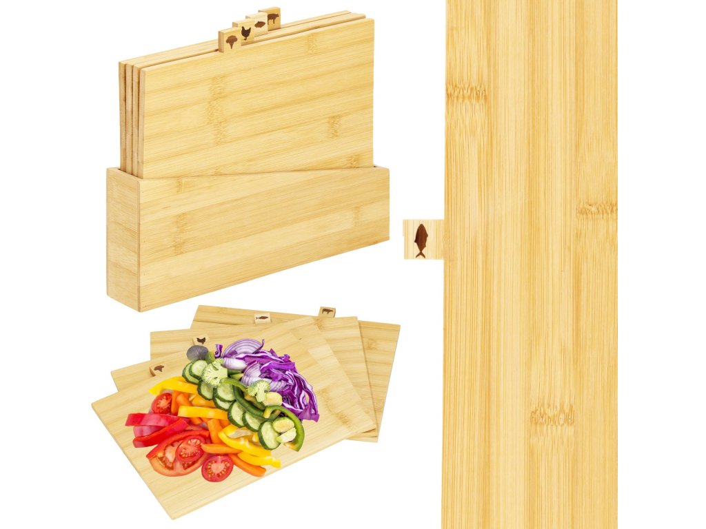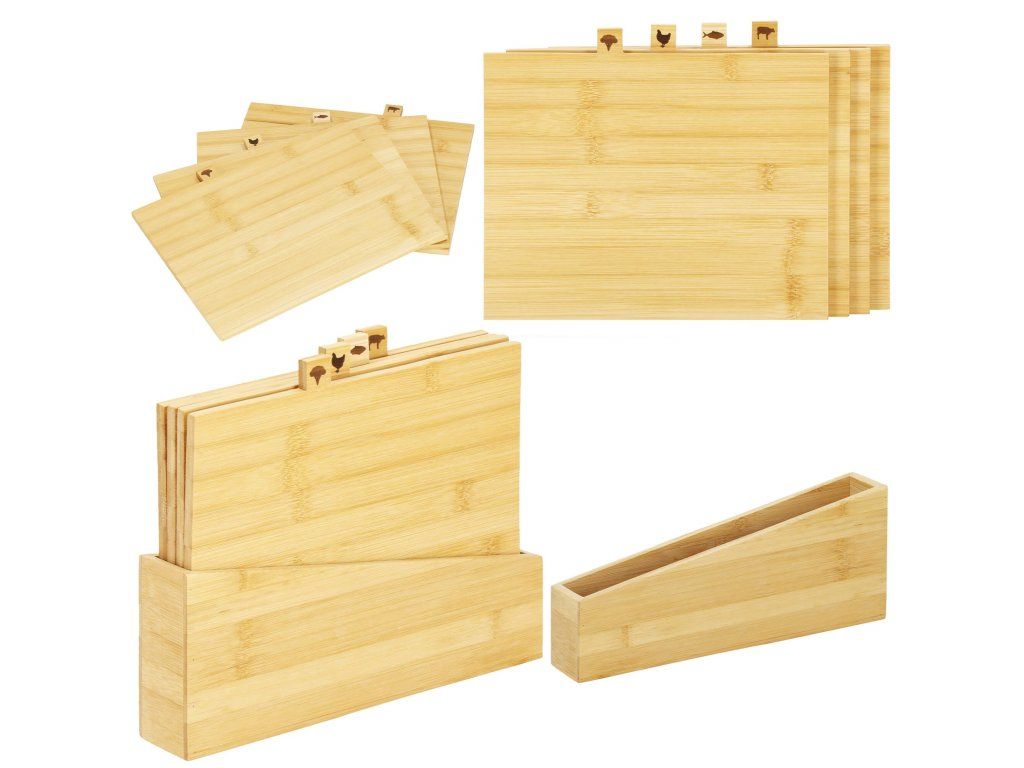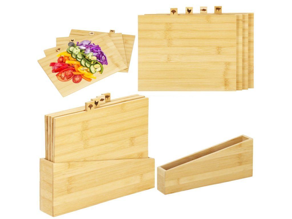 A készlet tartalma: 4x vágódeszka + deszkatartó