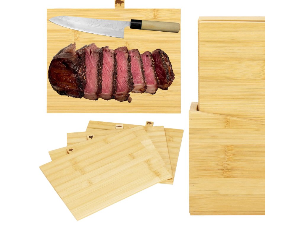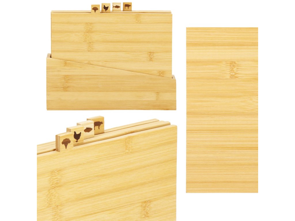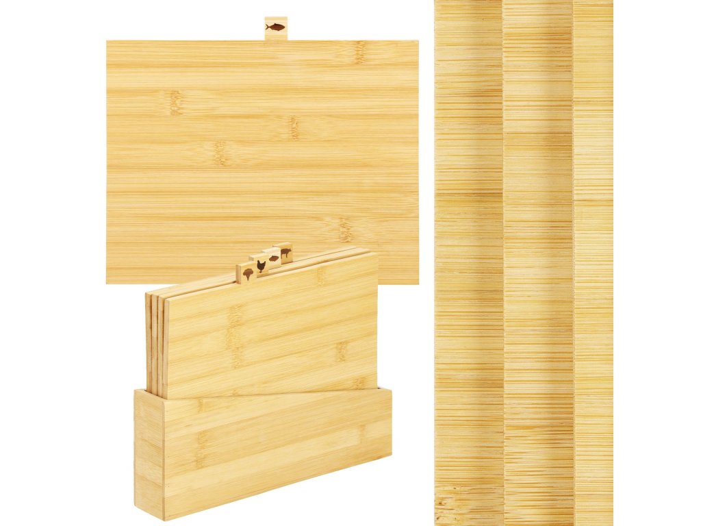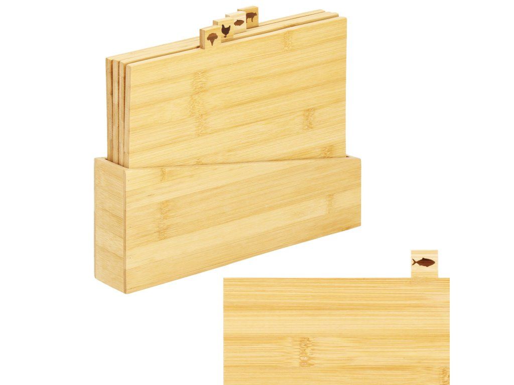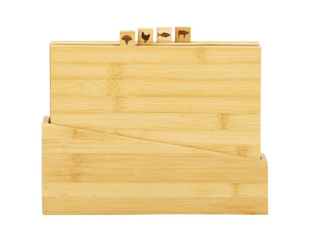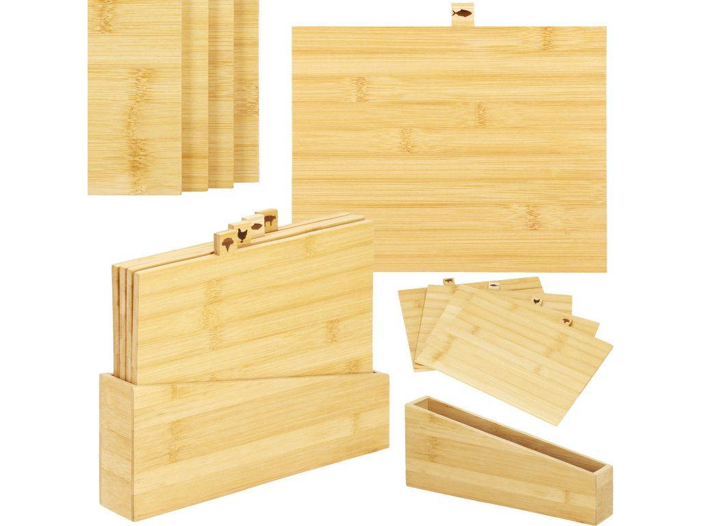 A készlet tartalma: 4x vágódeszka + deszkatartó