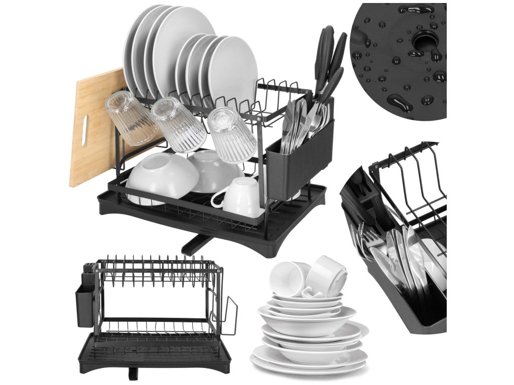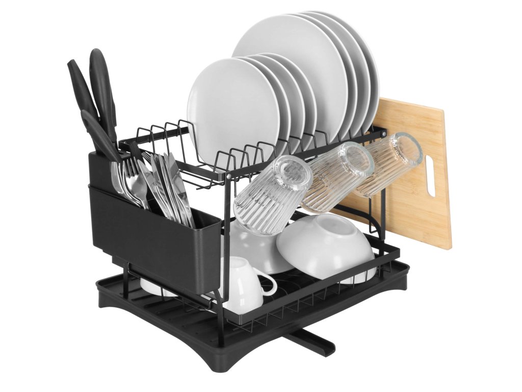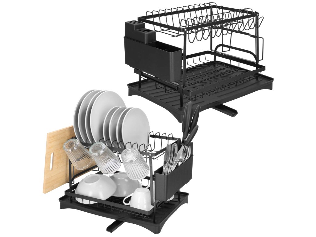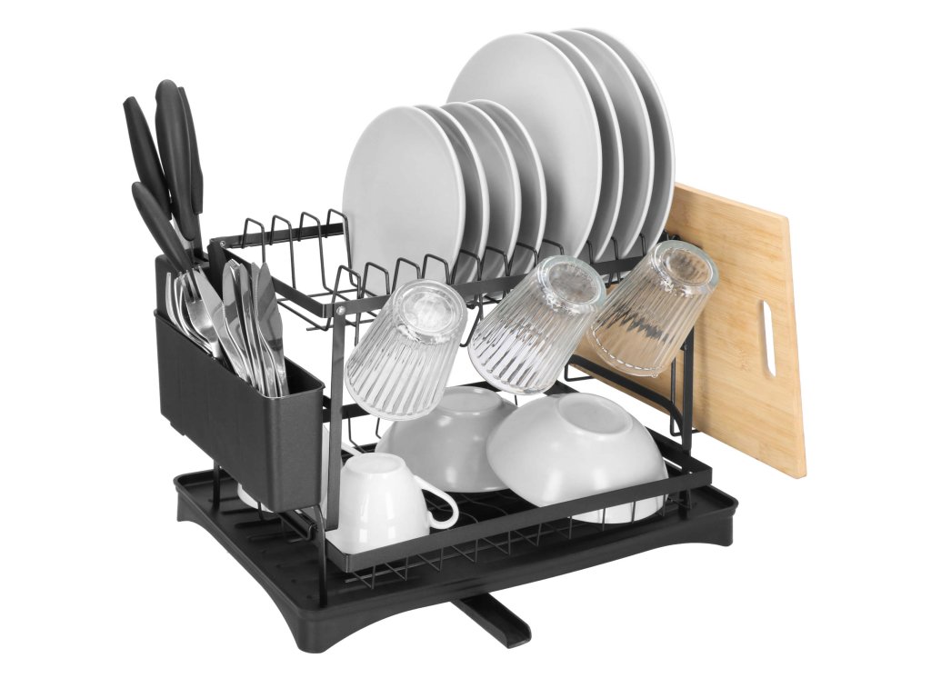 - Típus: kétszintes edényszárító fekete vízgyűjtő tálcával / kivehető evőeszköztartóval / kiegészítő tartóval