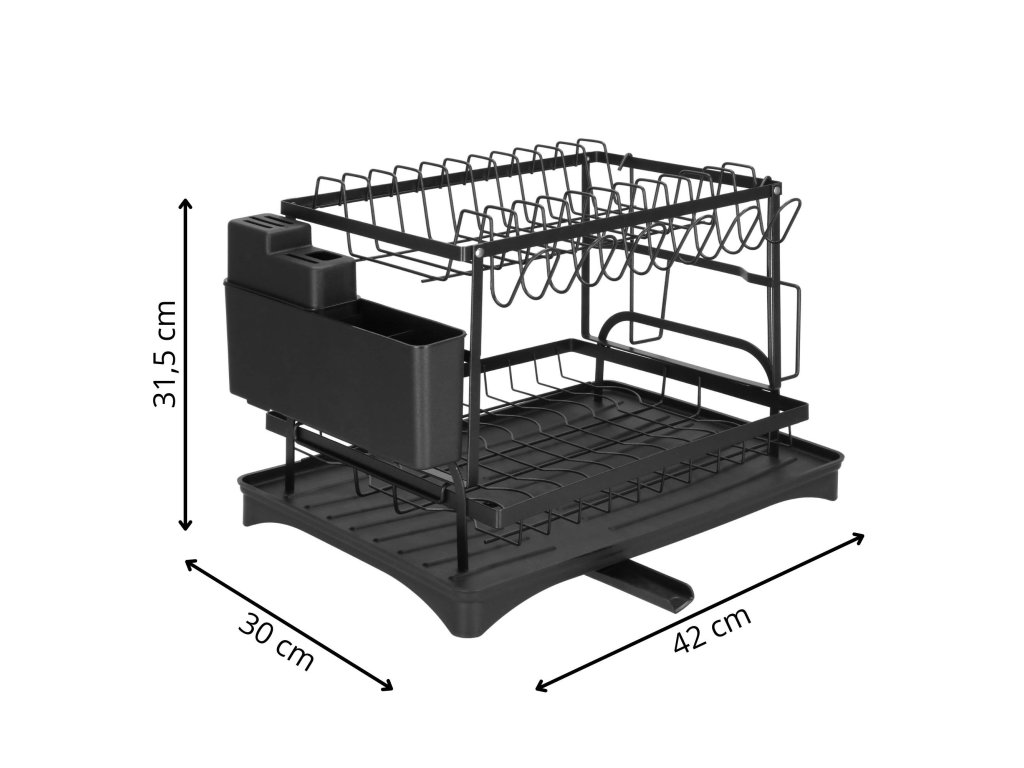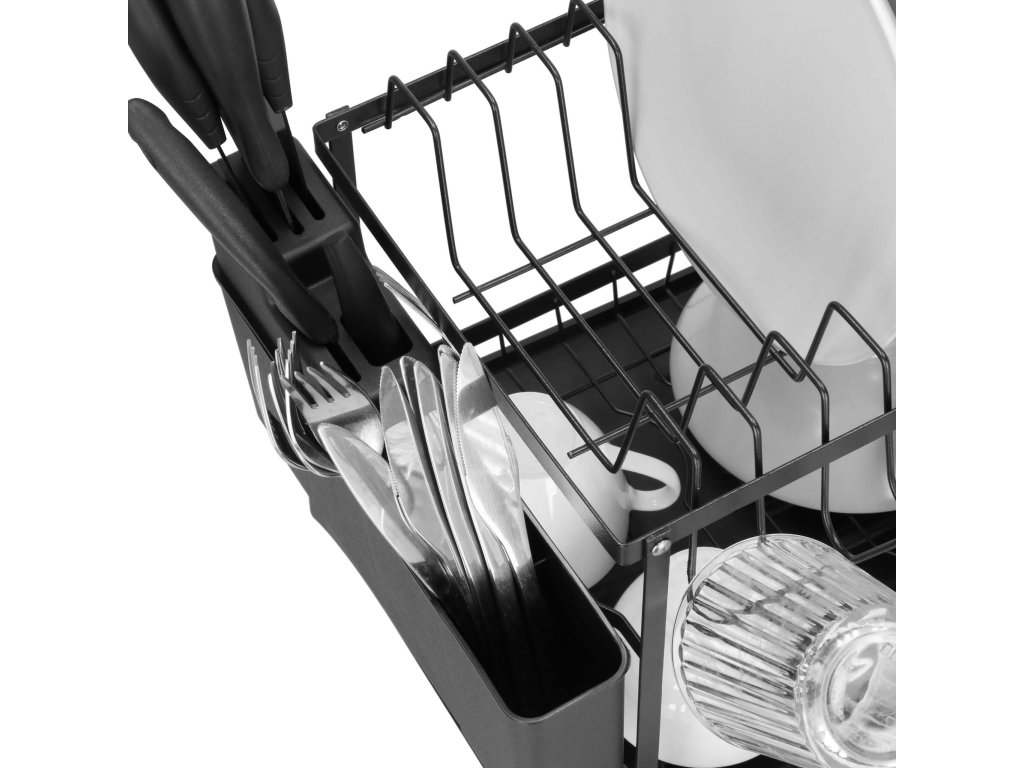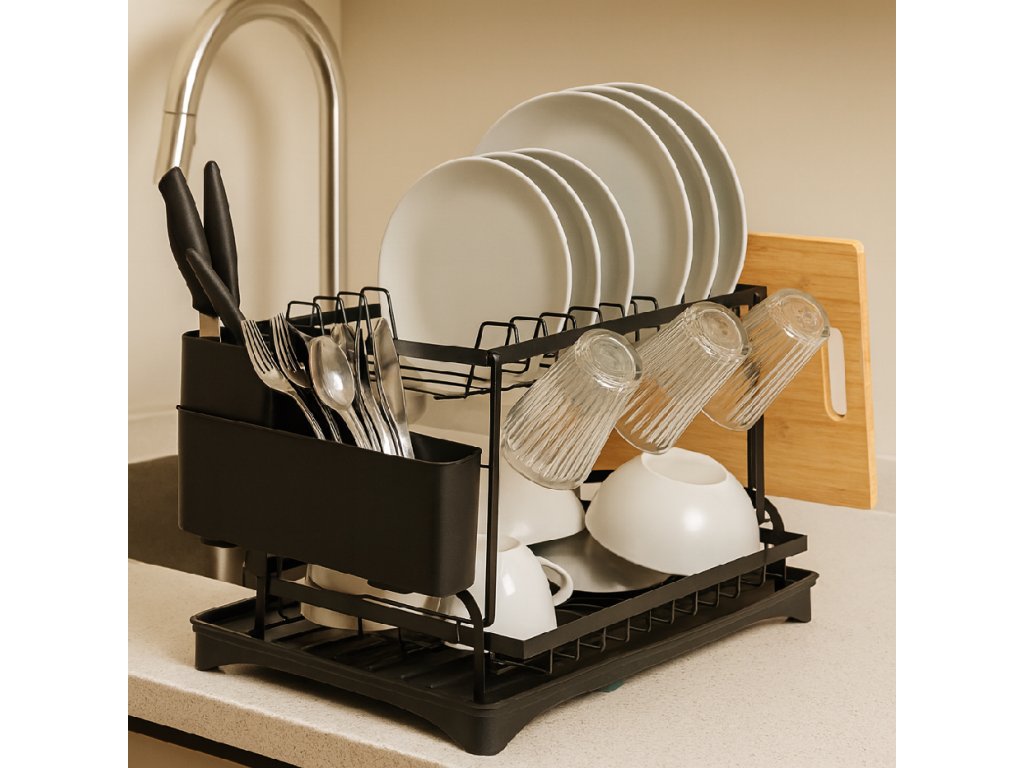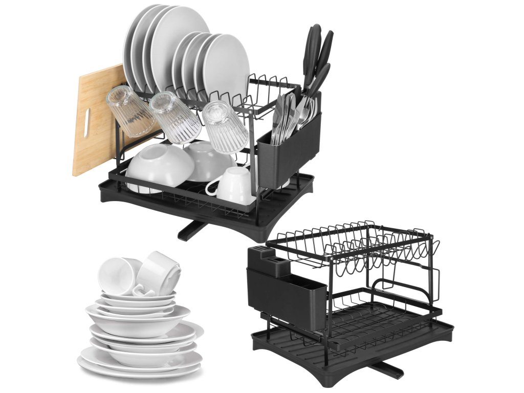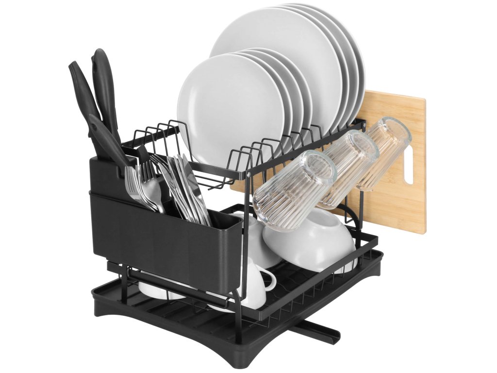 - Típus: kétszintes edényszárító fekete vízgyűjtő tálcával / kivehető evőeszköztartóval / kiegészítő tartóval