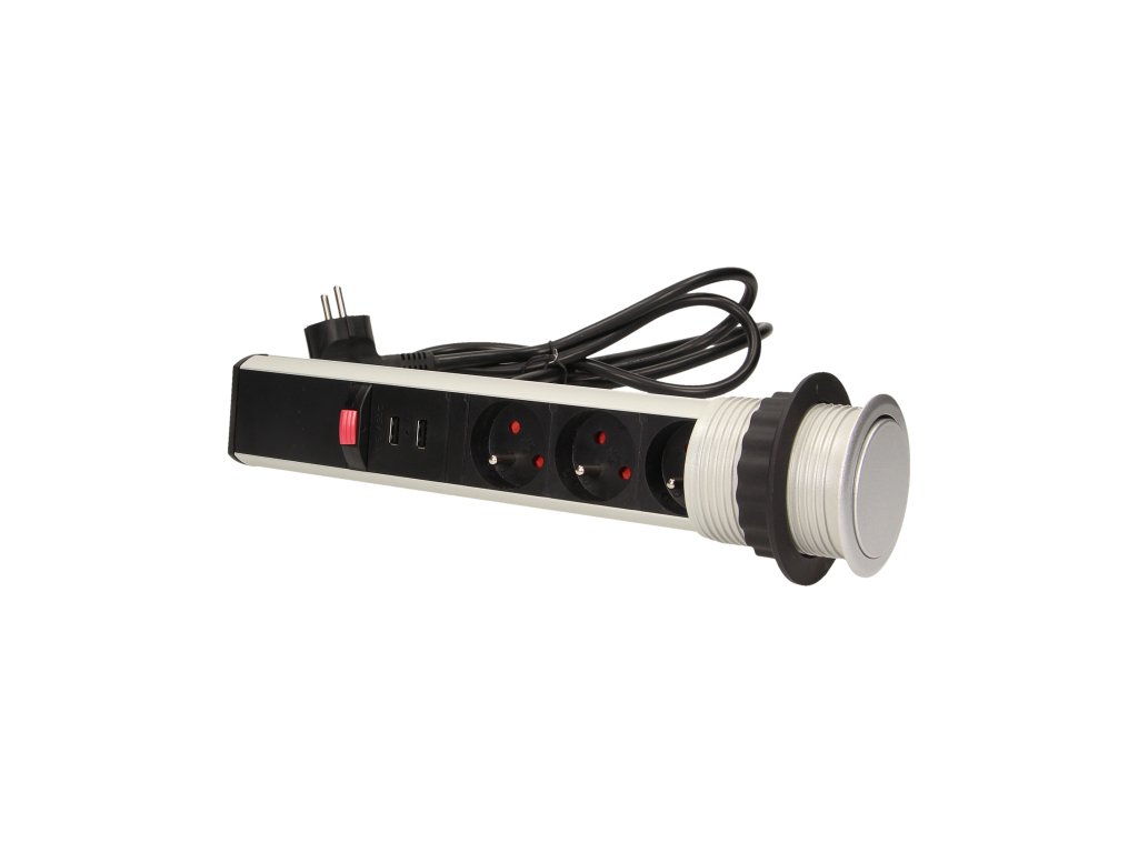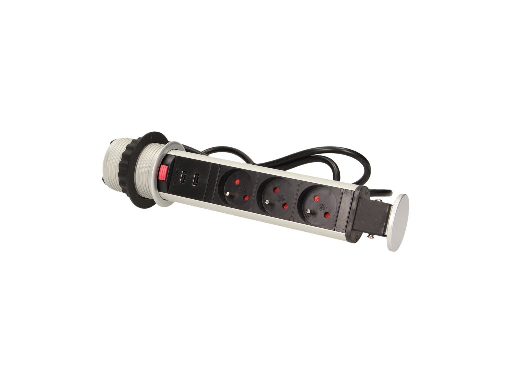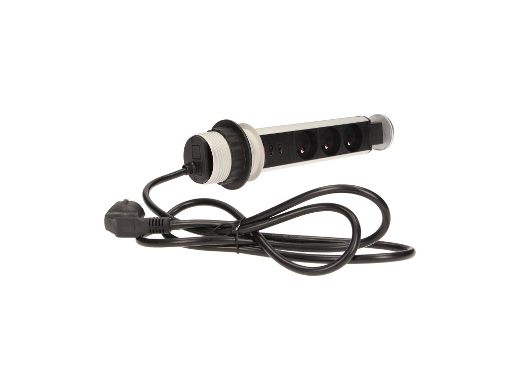 Kihúzható konnektor USB töltőkkel, 1,8 m kábel