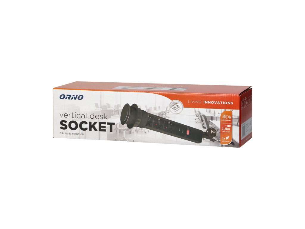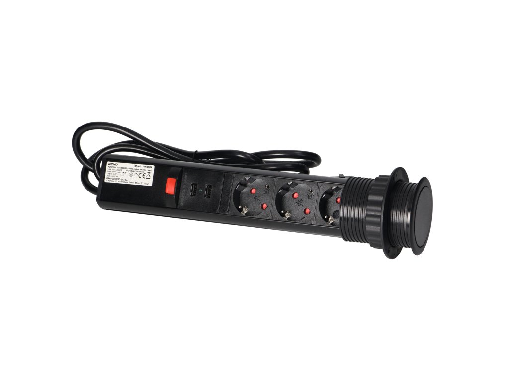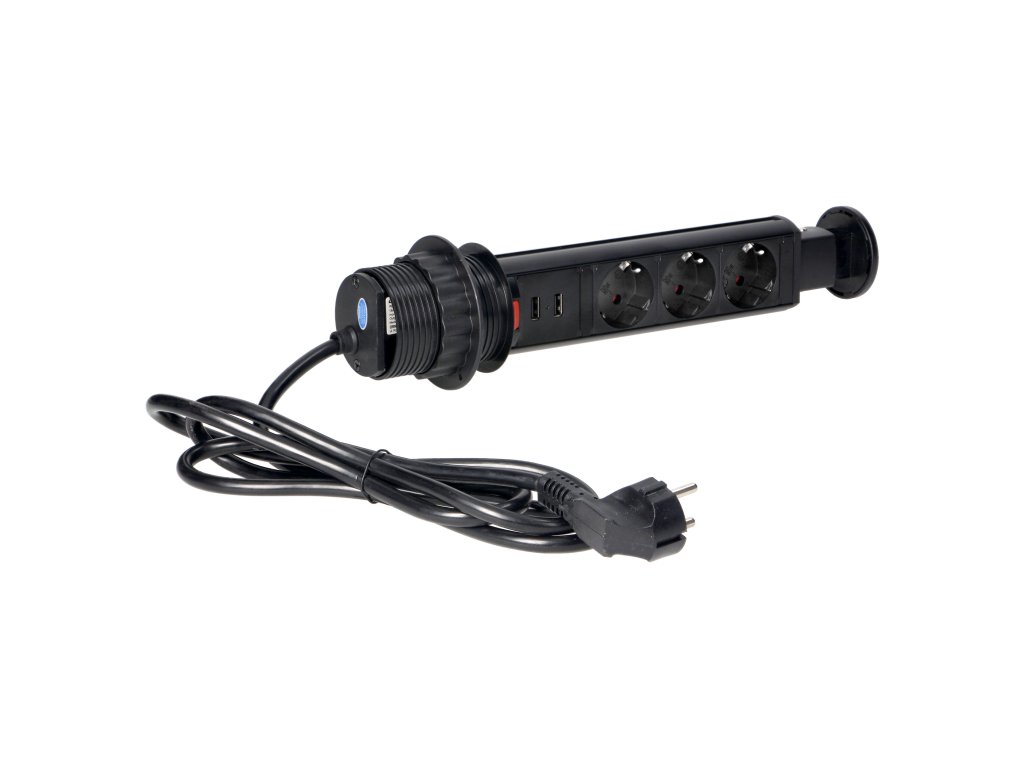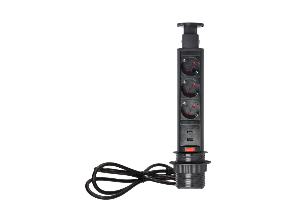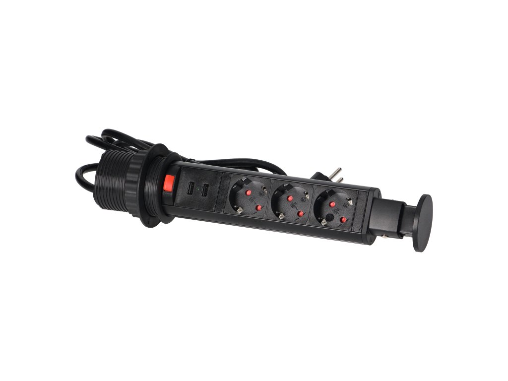 Három darab 2P+E aljzatból álló készlet földeléssel és áramvédelemmel, USB töltővel kombinálva. Minden egy kihúzható fedélbe van beépítve, amely hozzáférést biztosít a további konnektorokhoz. Kihúzható panellel rendelkezik aljzatokkal, kiegészítő zárral és 1,8 m-es kábellel. Íróasztalokba, asztallapokba és irodabútorokba történő belső beépítésre tervezték. A készülék asztallapba történő beszereléséhez elegendő egy 6 cm átmérőjű furat. A termék műanyagból és fekete lakkozott fémből készült.Műszaki leírás