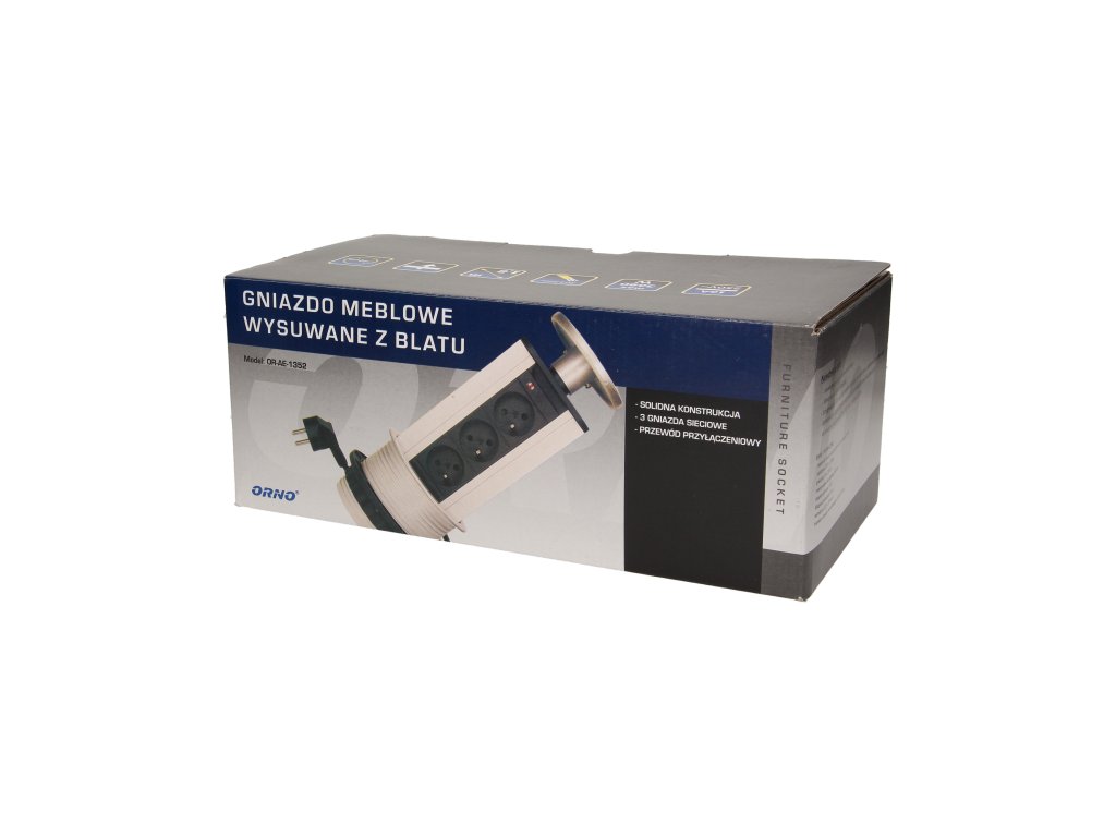Három darab 2P+Z aljzatból álló készlet kihúzható felső fedélben biztosítja a hozzáférést az elektromos csatlakozókhoz. Kihúzható panellel rendelkezik, amely konnektorokat tartalmaz .Íróasztalokba, asztallapokba és irodabútorokba történő belső beépítésre tervezték. A készülék asztallapba történő beszereléséhez mindössze egy 10 cm átmérőjű furat szükséges.