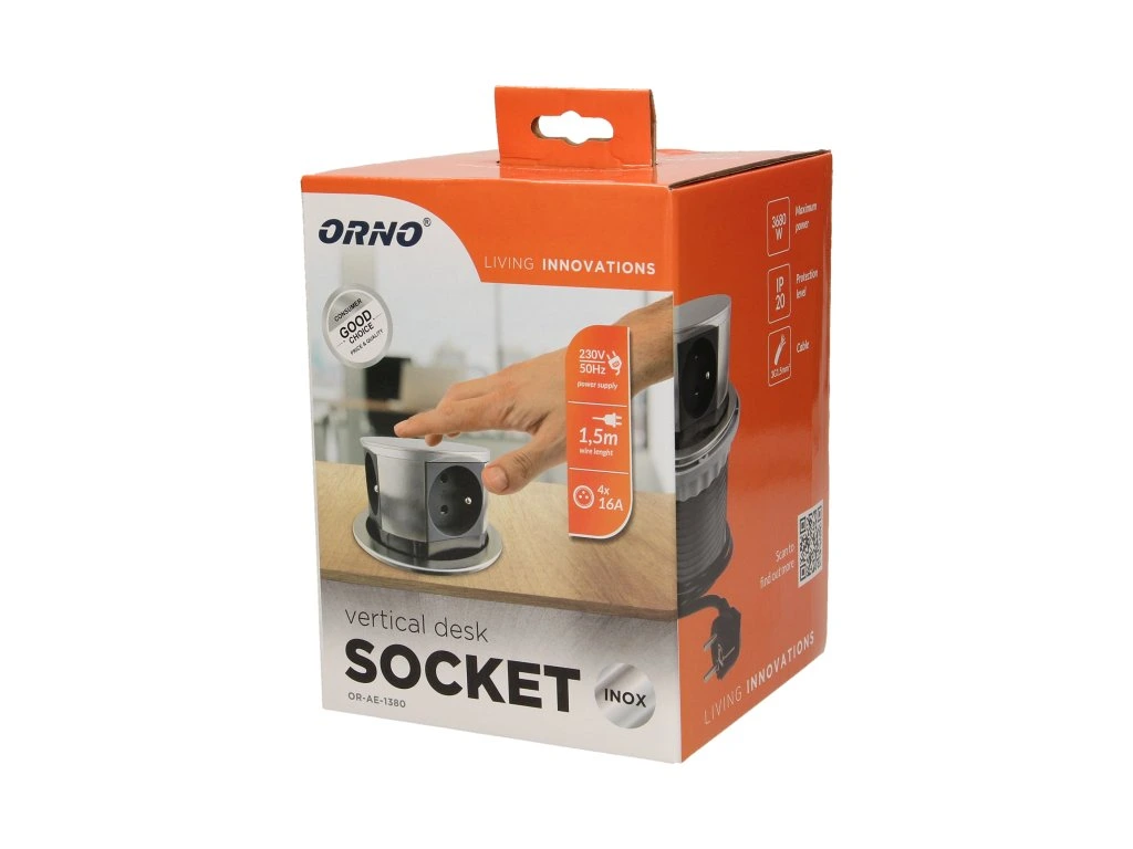 A négy darab 2P+Z konnektorból álló készlet kihúzható felső fedélben biztosítja a hozzáférést az elektromos csatlakozóaljzatokhoz. A tok megnyomásakor egy precíziós mechanizmus automatikusan elcsúsztatja a panelt a konnektorokkal .Íróasztalokba, asztallapokba és irodabútorokba történő beltéri beépítésre tervezték .A készülék asztallapba történő beszereléséhez mindössze egy 9,5 cm átmérőjű és 10 cm mélységű furat szükséges.