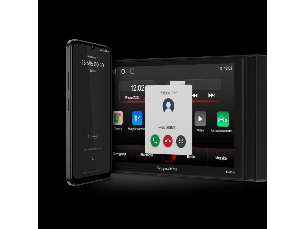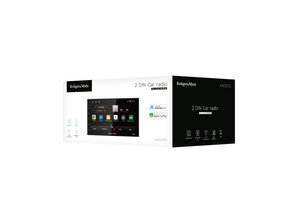 A KM2010 rádió CarPlay és Android Auto funkciókkal rendelkezik, amelyek lehetővé teszik, hogy telefonját az autóban sokkal biztonságosabban használhassa. Mindössze aktív Bluetooth és Wi-Fi szükséges, és a KM2010 lehetővé teszi, hogy a rádió kijelzőjén biztonságosan kezelje az olyan funkciókat, mint a hívások, üzenetek és multimédia.