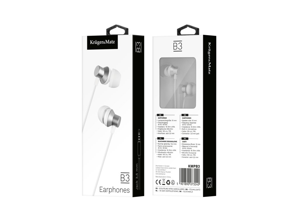 A Kruger&Matz B3 vezetékes fejhallgató többfunkciós gombbal van ellátva, amely megkönnyíti a használatát. Segítségével könnyedén felvehet vagy befejezhet egy hívást, elnémíthatja a mikrofont, vagy átugorhat a következő dalra stb.