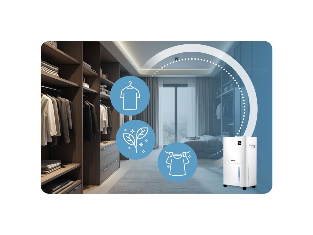 Lerövidíti a ruhák száradási idejét- – a párátlanító intenzíven szárítja a levegőt, ezáltal felgyorsítja a mosásból származó nedvesség elpárolgásának természetes folyamatát.