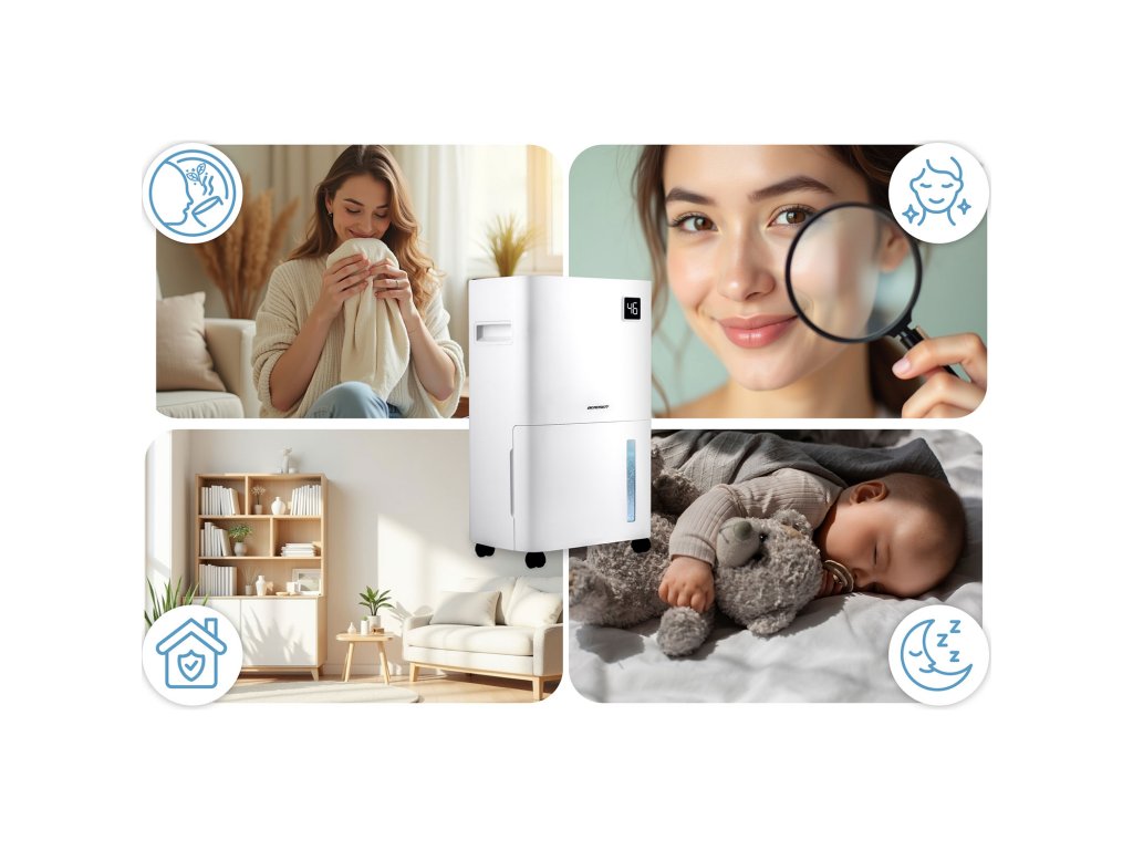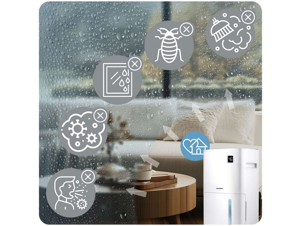 Hatékony védelem a gombák és baktériumok ellen- Támogatás a páratartalom elleni küzdelemhez – a párátlanító korlátozza a penész, gombák és baktériumok fejlődését.