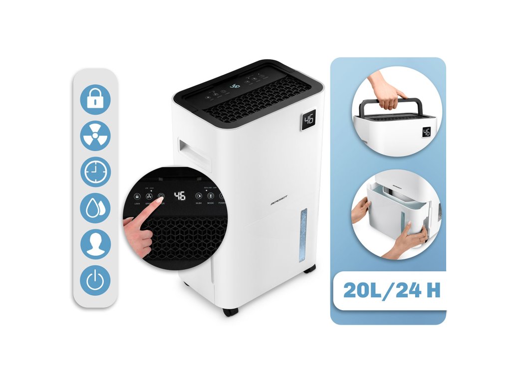- Három üzemmód – párátlanítás, folyamatos párátlanítás, ruhaszárítás.