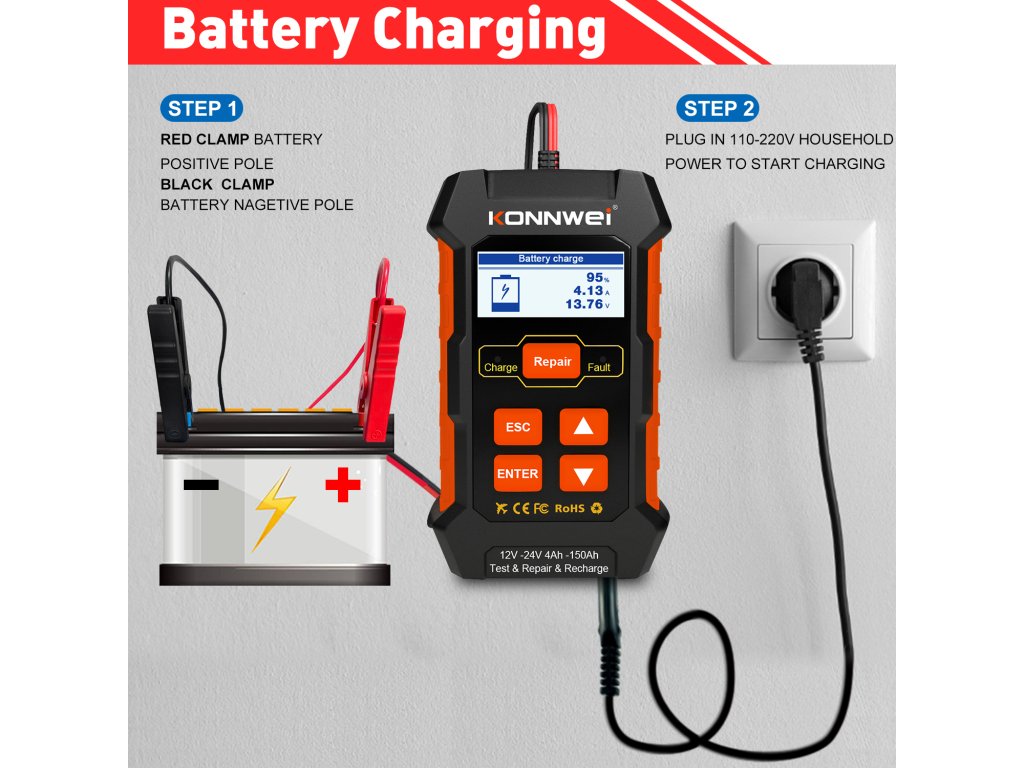 Mérhető feszültségtartomány: 12 - 24 V3 fokozatú automatikus töltés
