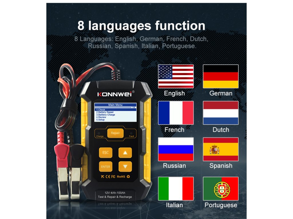 A kezelőfelület nyelve: angol, francia, német, holland, spanyol, orosz, portugál, olasz, orosz, német, holland