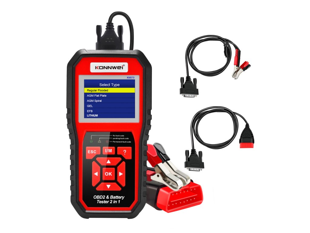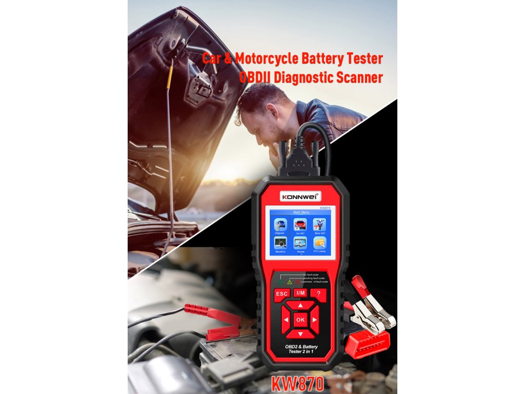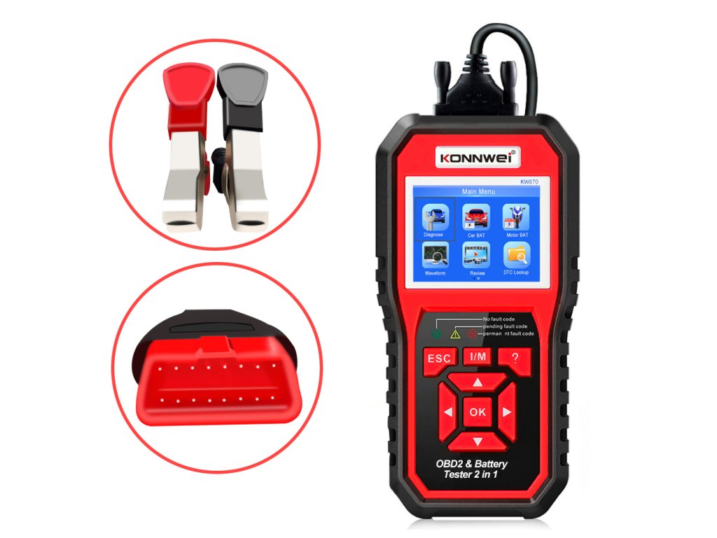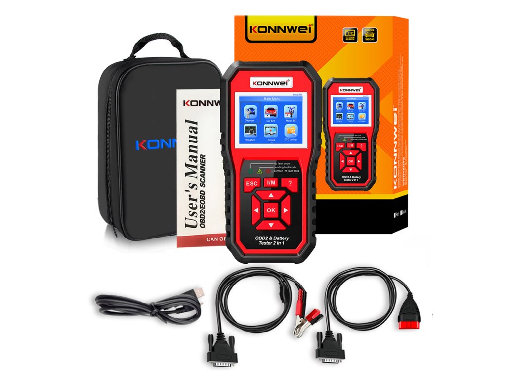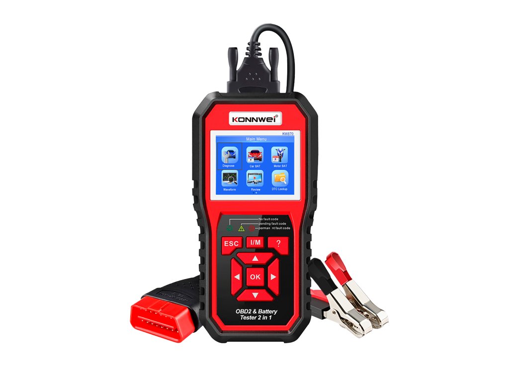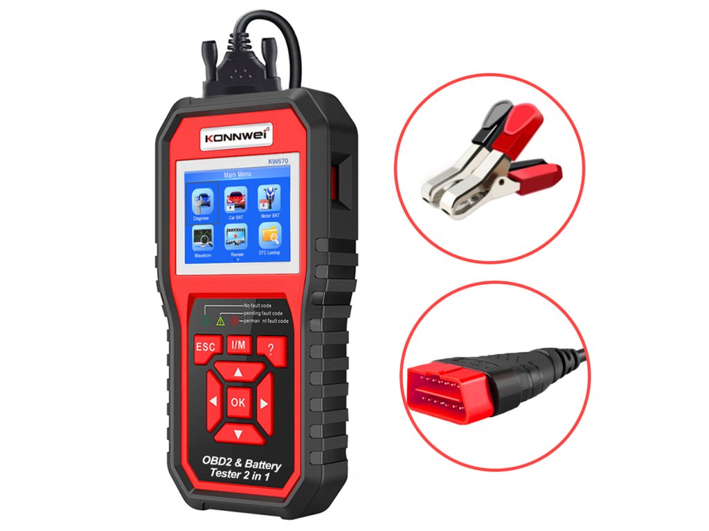 Konnwei KW870 OBD2 autódiagnosztika + autó akkumulátor tesztelő