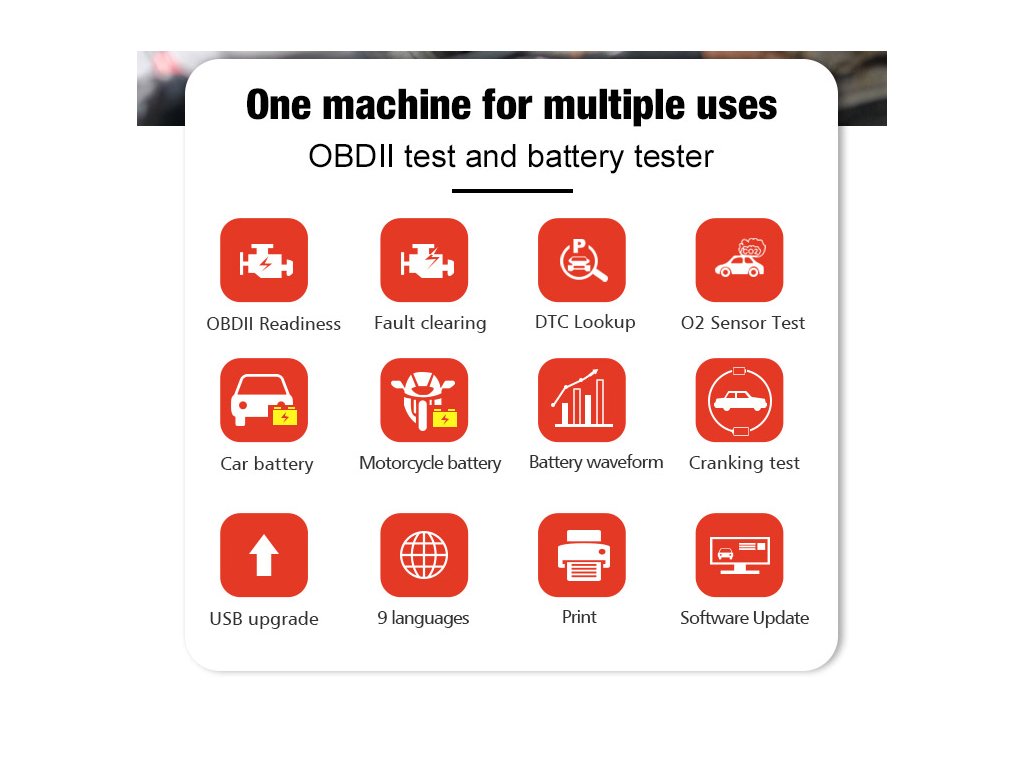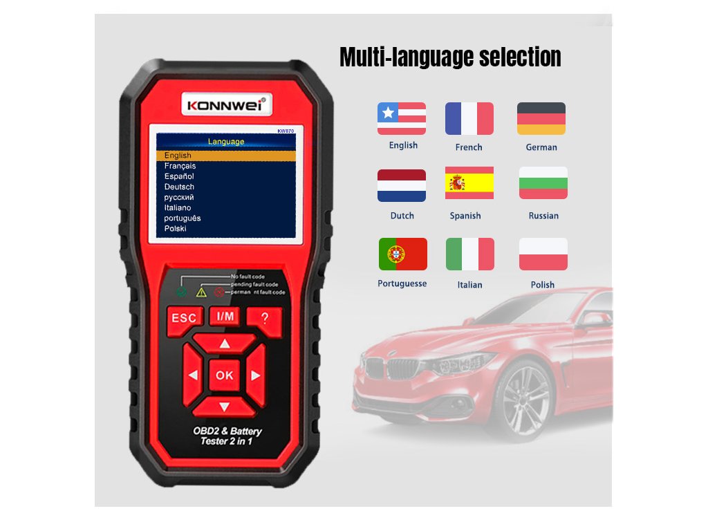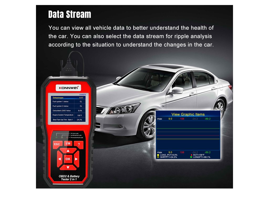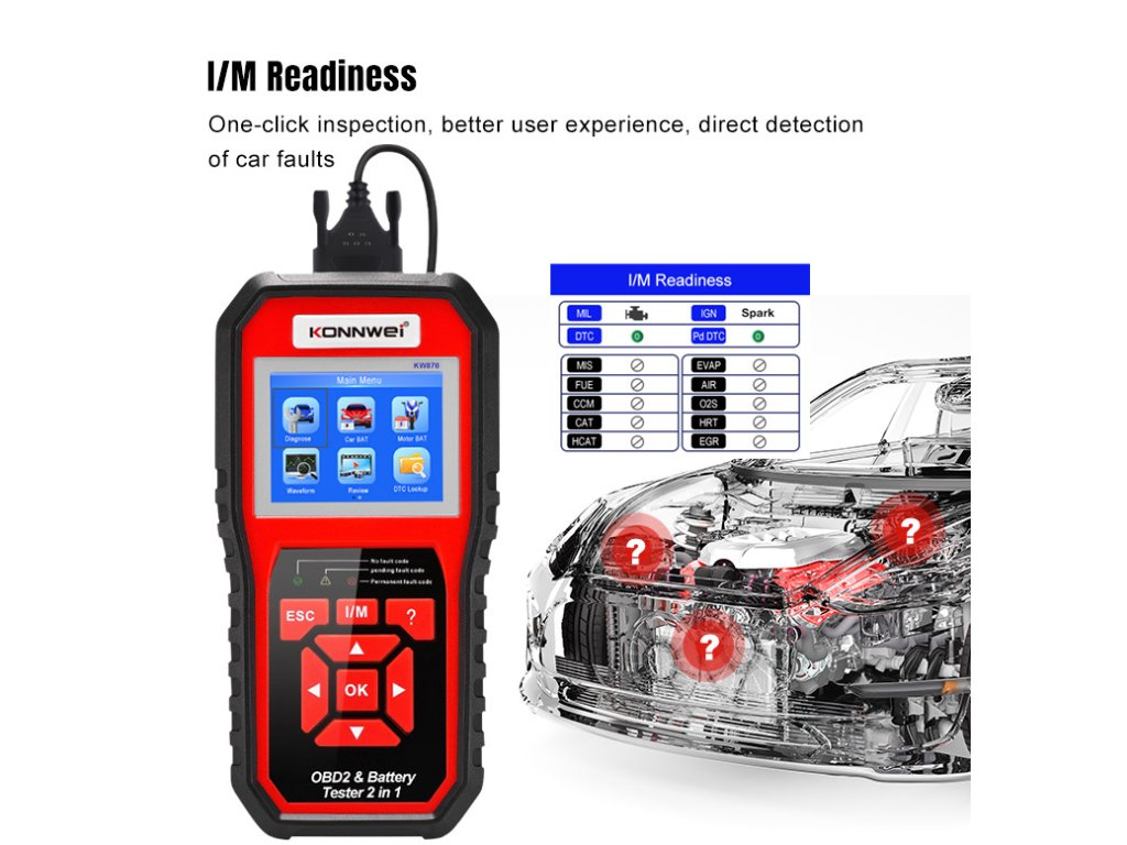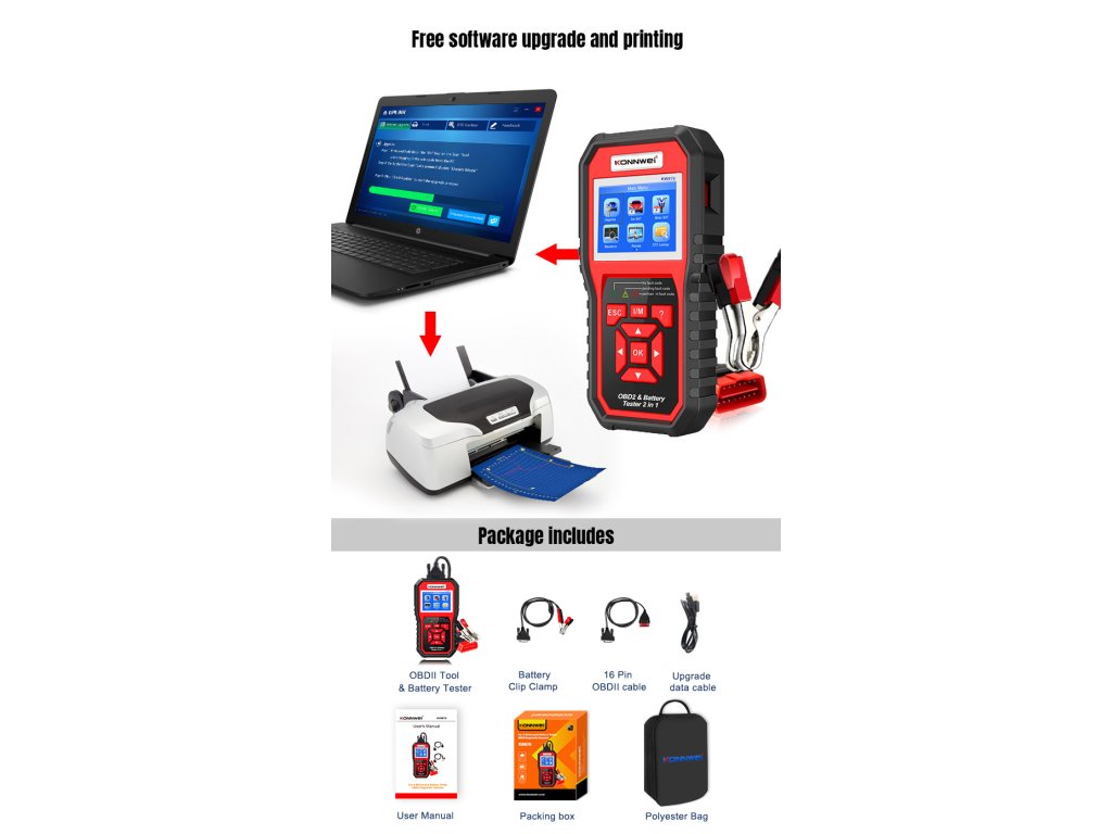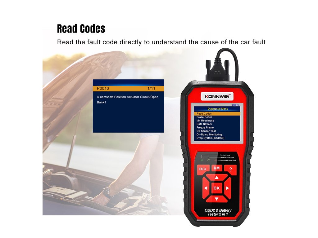 Konnwei KW870 OBD2 autódiagnosztika + autó akkumulátor tesztelő