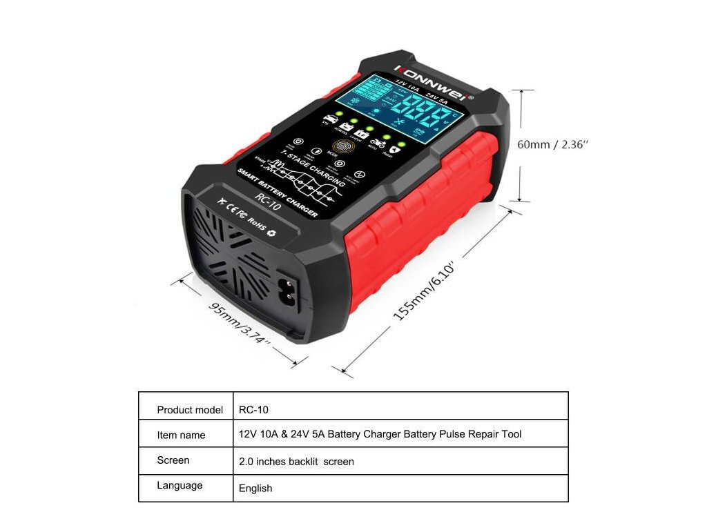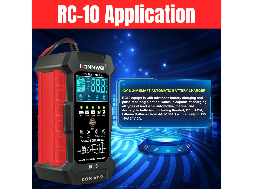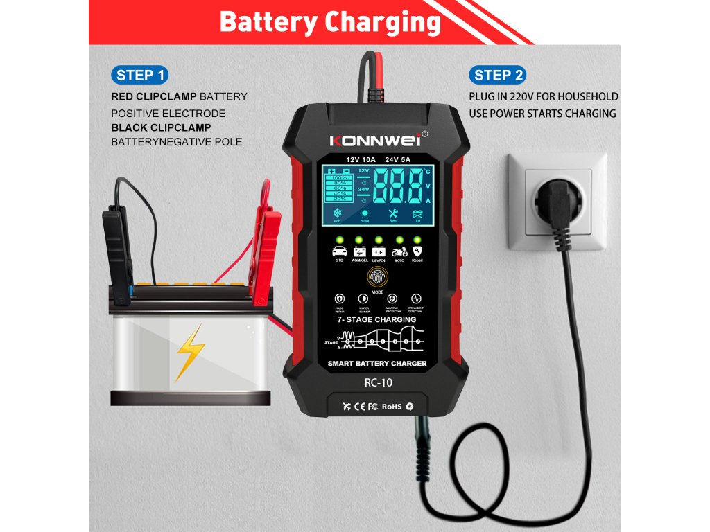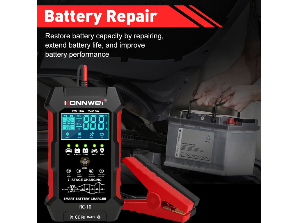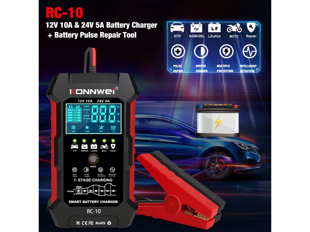 Konnwei RC-10 autó akkumulátor tesztelő