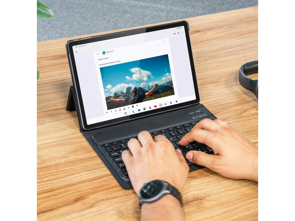 Az integrált billentyűzet Bluetooth 5.0 technológiával csatlakozik a tablethez, stabil kapcsolatot biztosítva akár 10 méteres távolságig. A mágneses rögzítés lehetővé teszi a billentyűzet egyszerű leválasztását, szükség esetén, rugalmasságot biztosítva a használat során. Ideális eszköz e-mailek, jegyzetek vagy dokumentumok írásához.