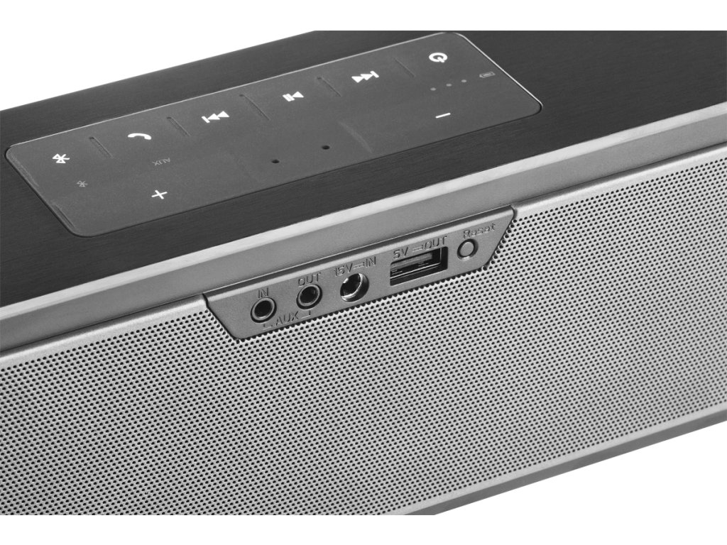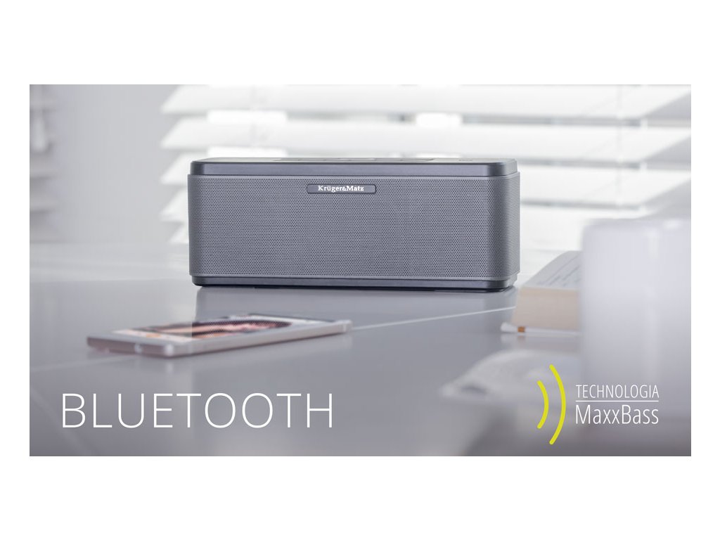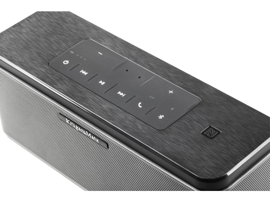 E rőteljes hatás A Kruger&Matz Executive egy kiváló minőségű, hordozható Bluetooth hangszóró kéterős 12,5 W-os meghajtóval, amely hihetetlen hangzásával és tisztaságával lenyűgözi Önt. A MaxxBass technológia alkalmazása ráadásul fokozza a mély hangok dinamikáját, ami nem egyszer meglepi Önt. A vezeték nélküli csatlakozáshoz egy másik eszközhöz az Executive a Bluetooth 4.0 technológiát használja, amelynek hatótávolsága legfeljebb 30 m, vagy az NFC-t. Ha azonban más adathordozón tárolt zenét szeretne hallgatni, használhatja az AUX bemenetet. A beépített mikrofon, amely az Executive készüléket kihangosító fejhallgatóvá alakítja, és az AUX-kimenet, amely egy második hangszóró csatlakoztatására használható, szintén kétségtelen előnyök. Szintén említést érdemel az USB-port, amely lehetővé teszi, hogy a készüléket power bankként használja.