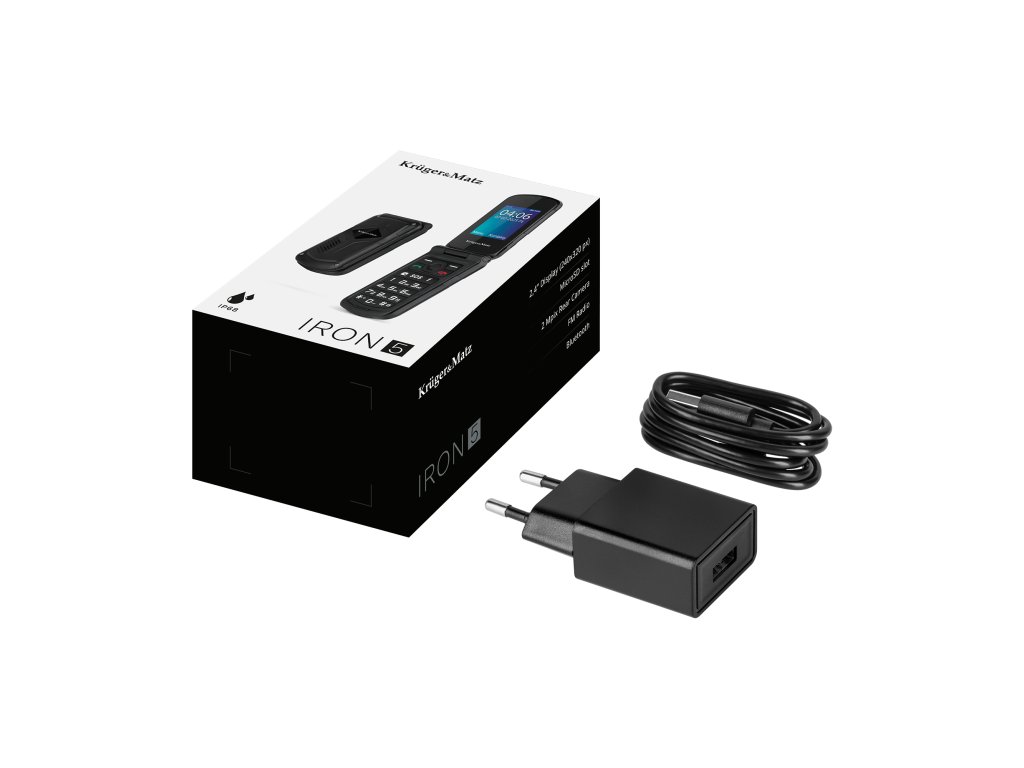 A Kruger&Matz Iron 5 Flip egy klasszikus, felhajtható kialakítású telefon modern kidolgozással, azok számára, akik értékelik az egyszerűséget, a tartósságot és a megbízhatóságot. Funkcionalitásának köszönhetően ez a modell tökéletesen alkalmas szilárd telefonként mindennapi használatra - munka közben is, és szabadtéri tevékenységek során is.
