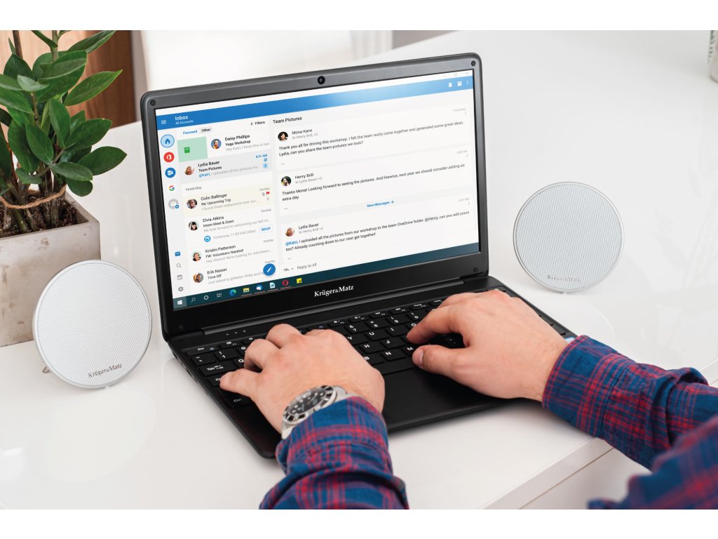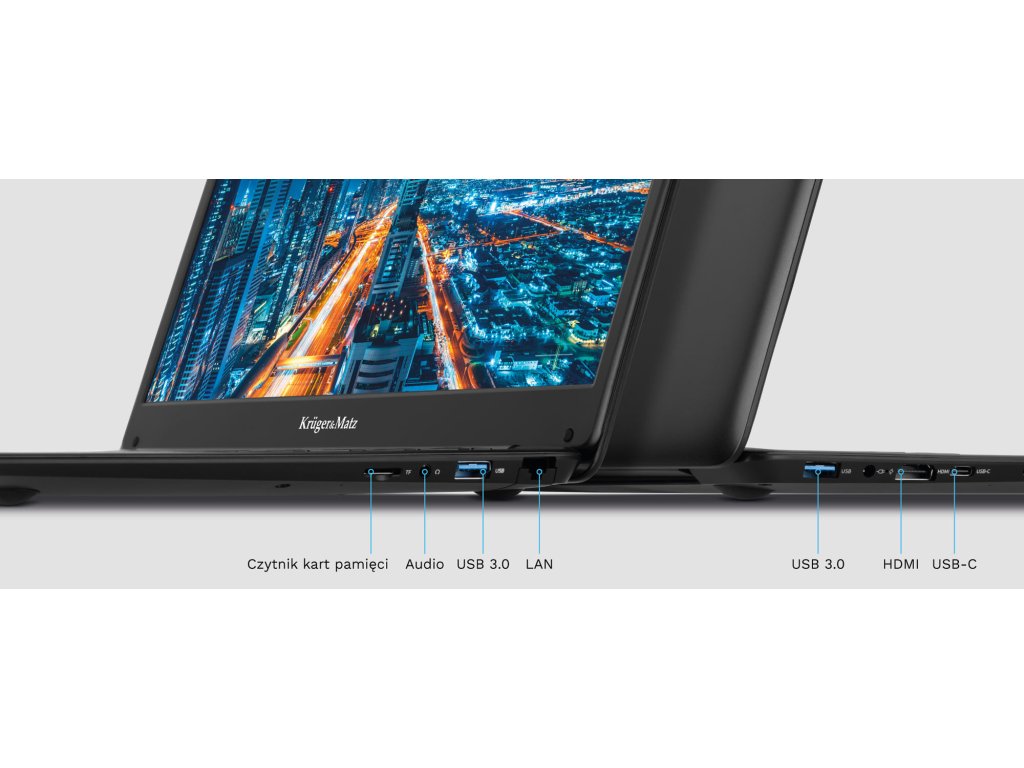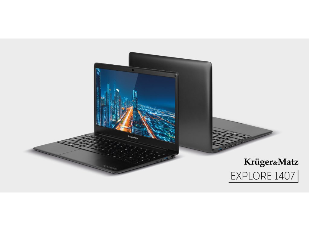 A Kruger&Matz Explore 1407 nem csak a pazar belső térről szól, a fejlett alkatrészek és a 14 hüvelykes képernyő elegáns fekete tokba vannak zárva. A laptop karcsú vonalainak és könnyű súlyának köszönhetően bárhová magaddal viheted.