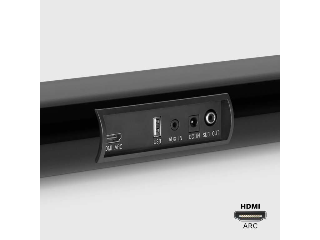 Bemenetek/kimenetek: HDMI bemenet (ARC), USB port, AUX-bemenet (3,5 mm-es jack)