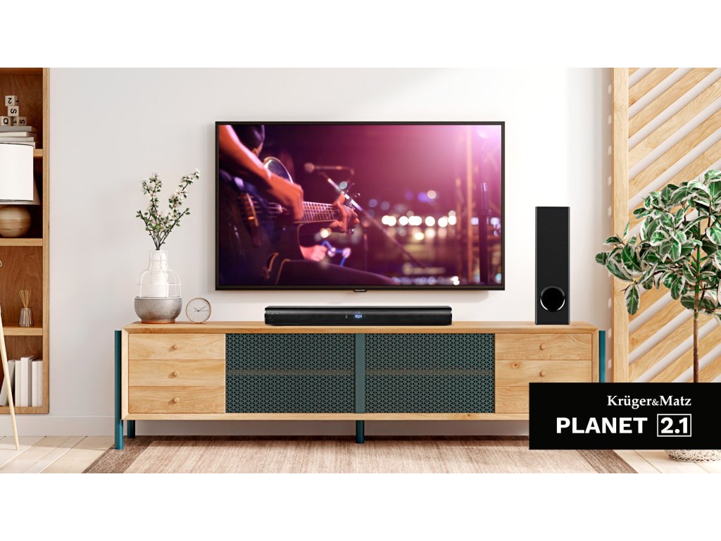Bármilyen legyen is otthonod berendezése, a Kruger&Matz Planet 2.1 soundbar könnyedén illeszkedik bármilyen enteriőrbe. A készüléket elhelyezheti a tévészekrényen, vagy a falra is felszerelheti. Méretének köszönhetően a készülék nem foglal sok helyet, de kiváló hangzást kínál, amely betölti a teret.