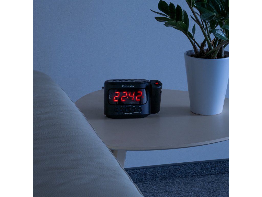 Innovatív kiegészítő, amely növeli a használat kényelmét. Az idő vetítése lehetővé teszi a pontos idő megjelenítését a mennyezeten vagy a falon - ideális megoldás, ha az éjszaka közepén szeretné ellenőrizni az időt, felkelés nélkül. A pontos és olvasható számok biztosítják, hogy mindig tisztában legyen az idővel, még teljes sötétben is.