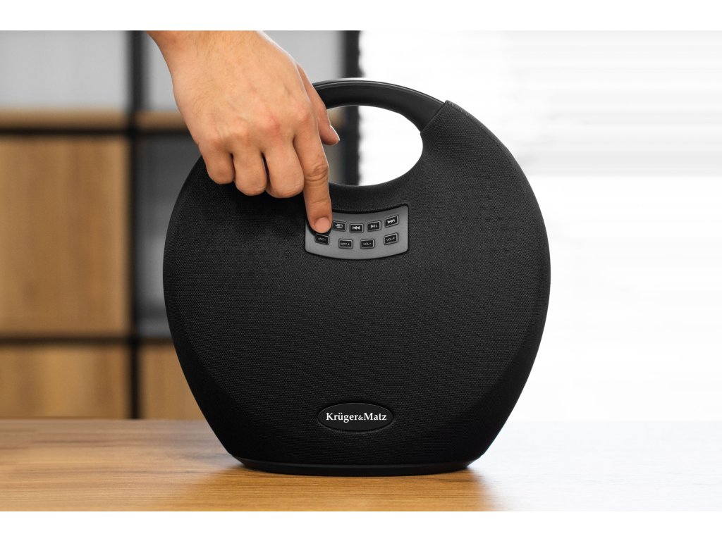 A Kruger&Matz Spiral Bluetooth hangszóró sokkal szélesebb körű felhasználását garantálja a mellékelt távirányító. Segítségével tetszés szerint beállíthatja a hangot, felveheti és lejátszhatja a hangokat, vagy kiválaszthatja a hangforrásokat.
