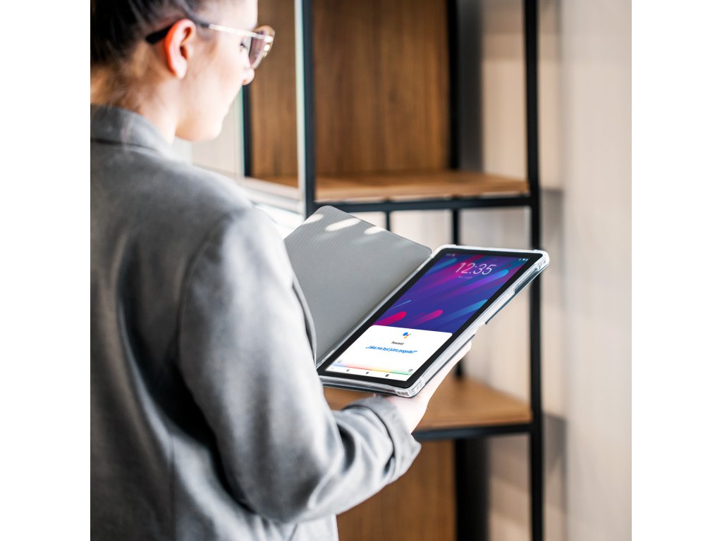 Szeretné mindig magánál tartani a tabletjét, de fél, hogy megsérül? Megvan a tökéletes megoldás az Ön számára - egy kifejezetten az EAGLE 1072 készülékhez tervezett borító, amely zökkenőmentes hozzáférést biztosít a készülék összes interfészéhez. Emellett összecsukható kialakítású, amely lehetővé teszi, hogy tabletjét kényelmes pozícióba helyezze filmnézéshez vagy dokumentumok készítéséhez.
