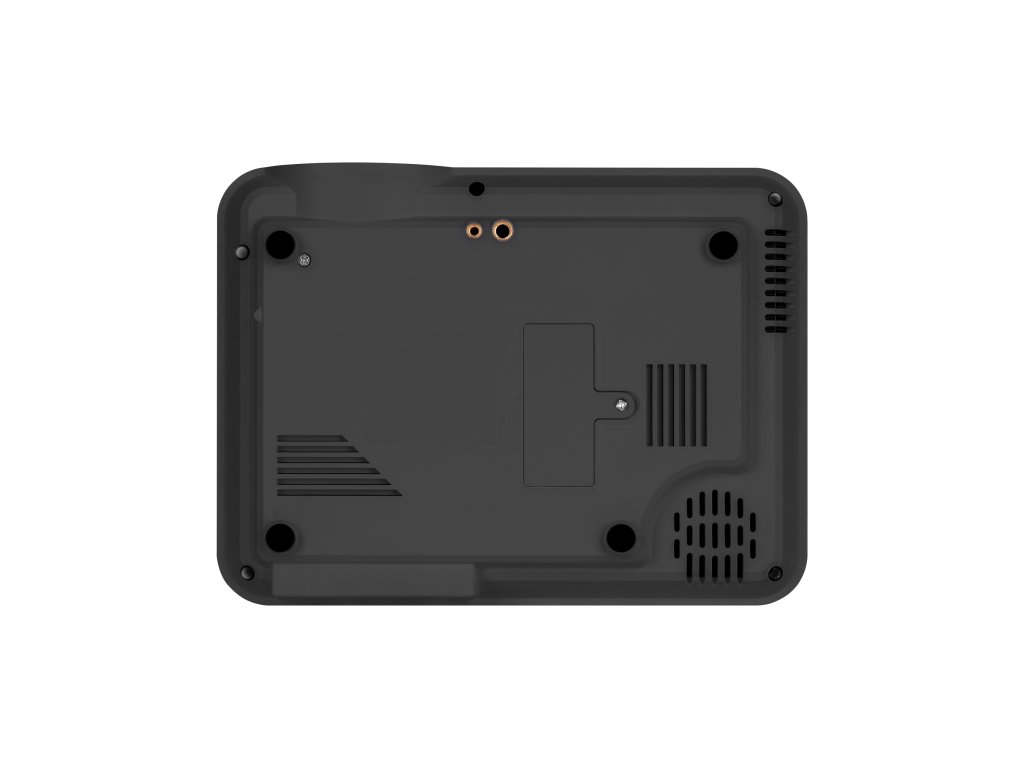 Nincs hely az íróasztalán? Ez nem probléma! A Kruger&Matz V-LED60 projektor alján két menetet talál, amelyek segítségével a projektort állványra vagy konzolra rögzítheti.