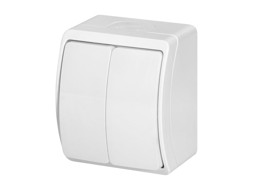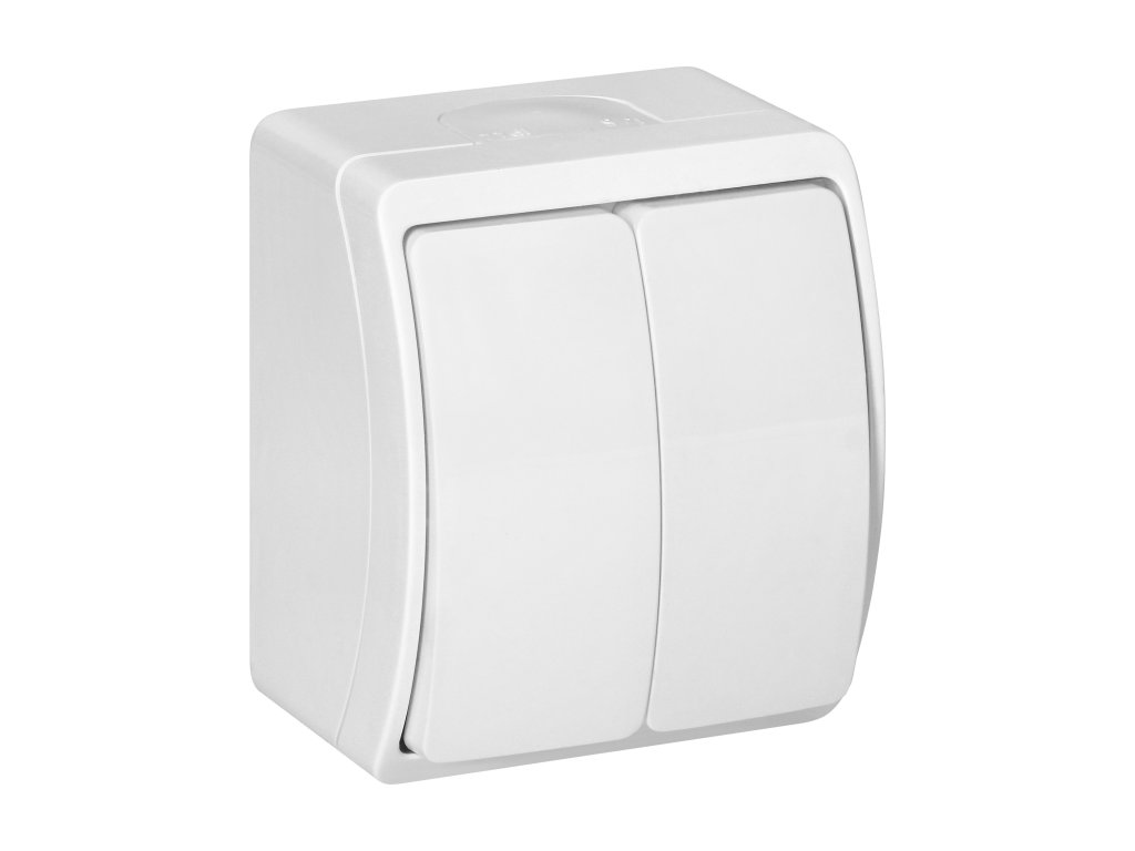- Minőségi anyagok: Magas minőségű anyagokból készül, a Kültéri dupla kapcsoló IP44 fehér hosszú élettartamra és megbízhatóságra tervezett eszköz.