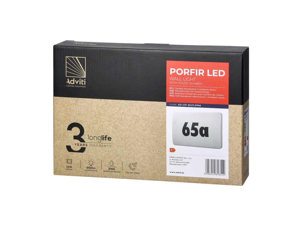 12W-os, 4000K-es, IP65-ös, házszámos kültéri LED-lámpa