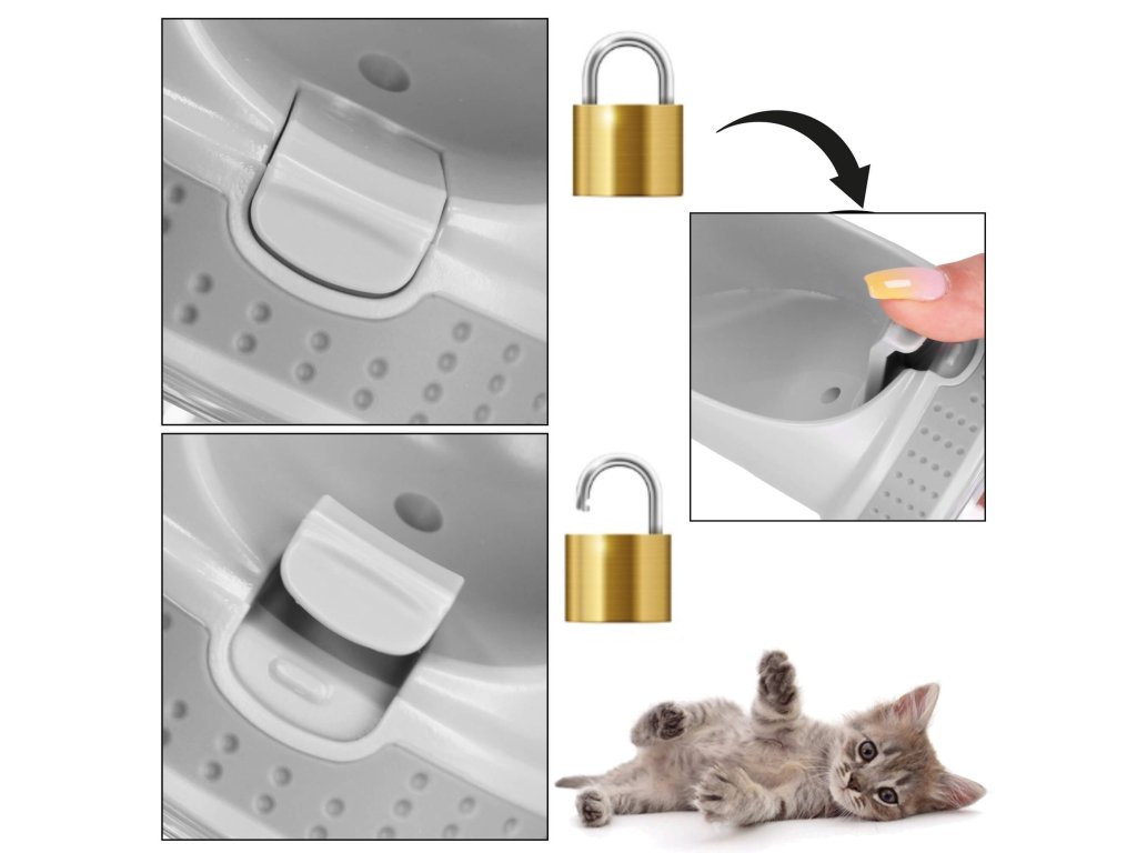 - Az itatón van egy gomb, amely zárral rendelkezik, a vízszelep kinyitására szolgál.