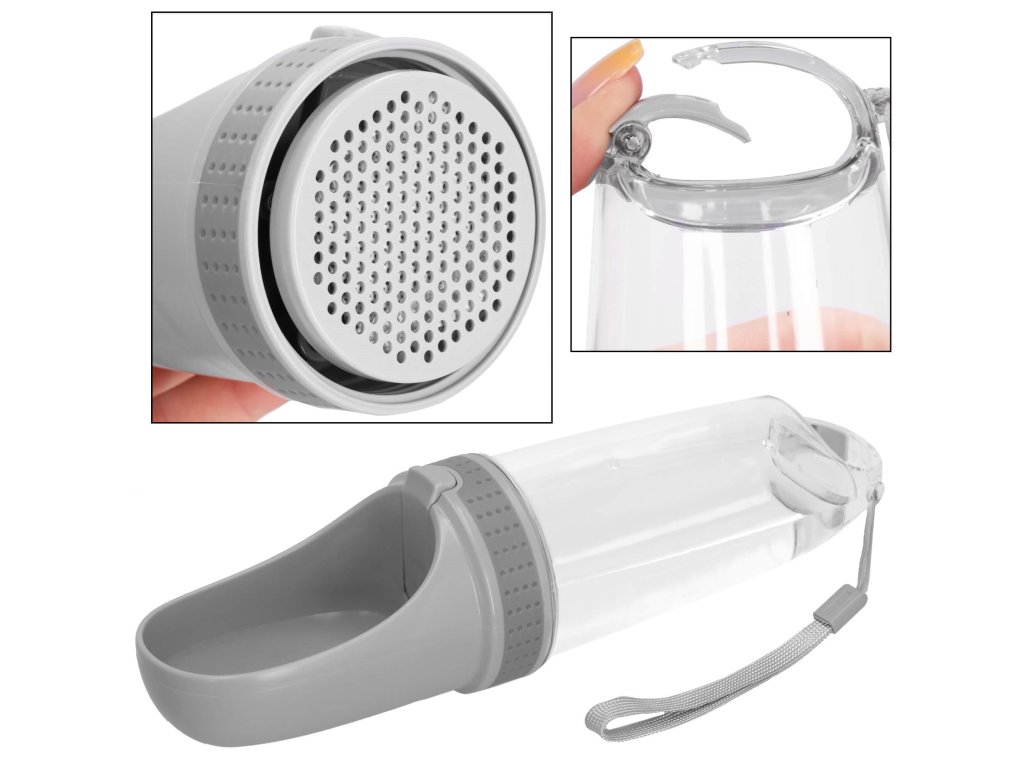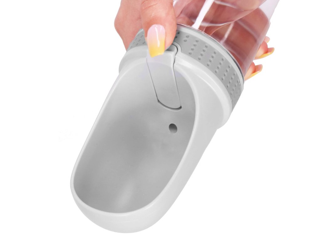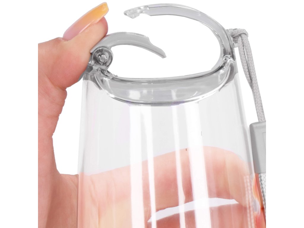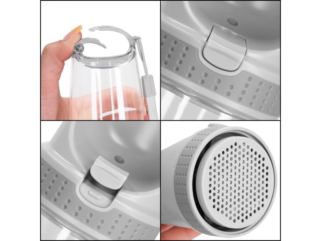 - Az üveg alján található egy tartó, amely kinyitható és bezárható - például hátizsák vagy táska pántjára rögzíthető.