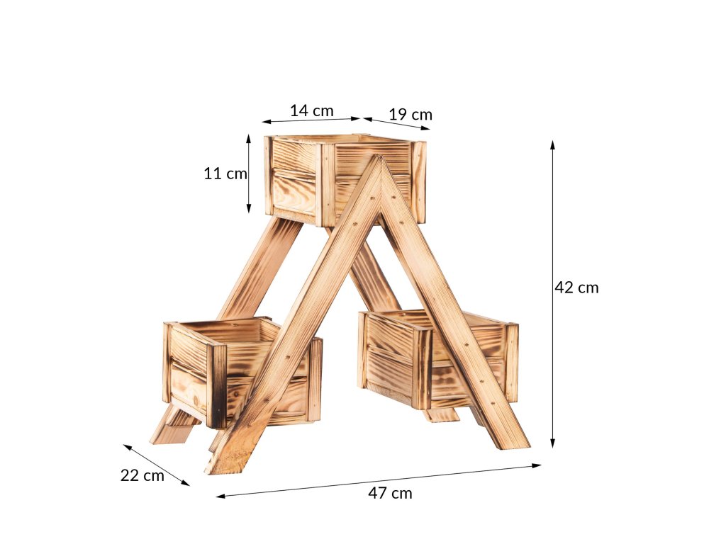 - Külső méretű virágtartók: magasság 11 cm, szélesség 14 cm, hosszúság 19 cm,