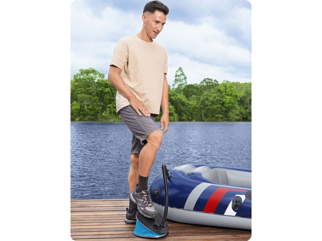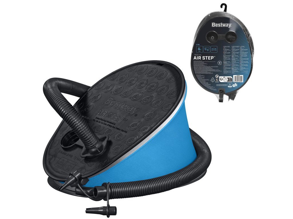 A Bestway lábpumpa gyorsan előkészíti a felfújható terméket használatra. Három cserélhető csatlakozó biztosítja a kompatibilitást minden felfújható termékkel. A Bestway lábpumpa használható előre előkészített matrac vagy gyerekjáték leeresztésére is.