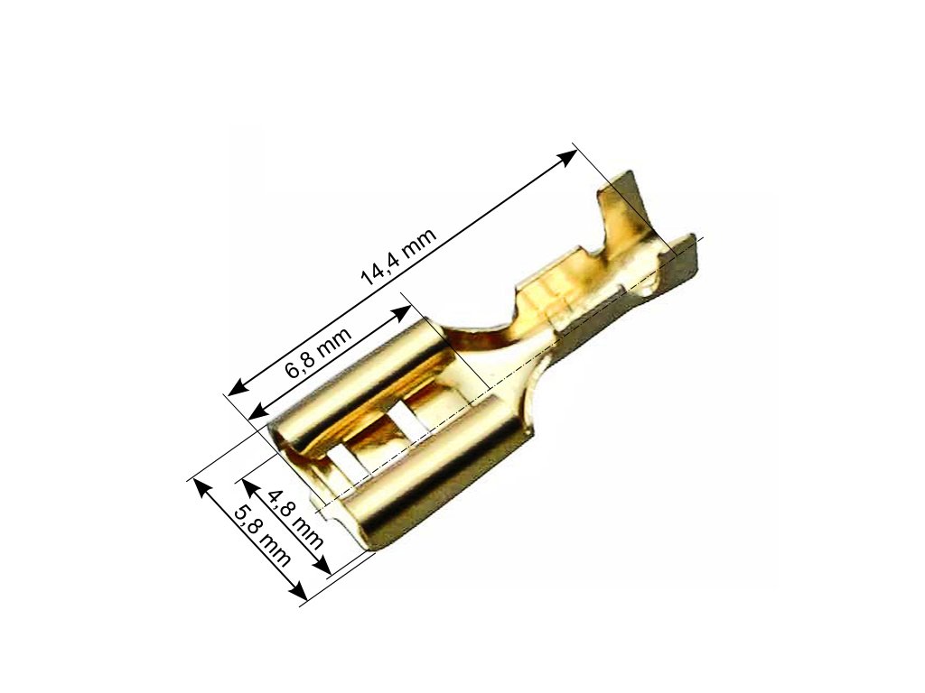 - Méretek: A csatlakozó mérete 4,8 mm széles, amely biztosítja az univerzális kompatibilitást különböző elektromos alkatrészekkel és kábelekkel. A 0,5 mm vastagság biztosítja a kapcsolat szilárdságát és stabilitását.