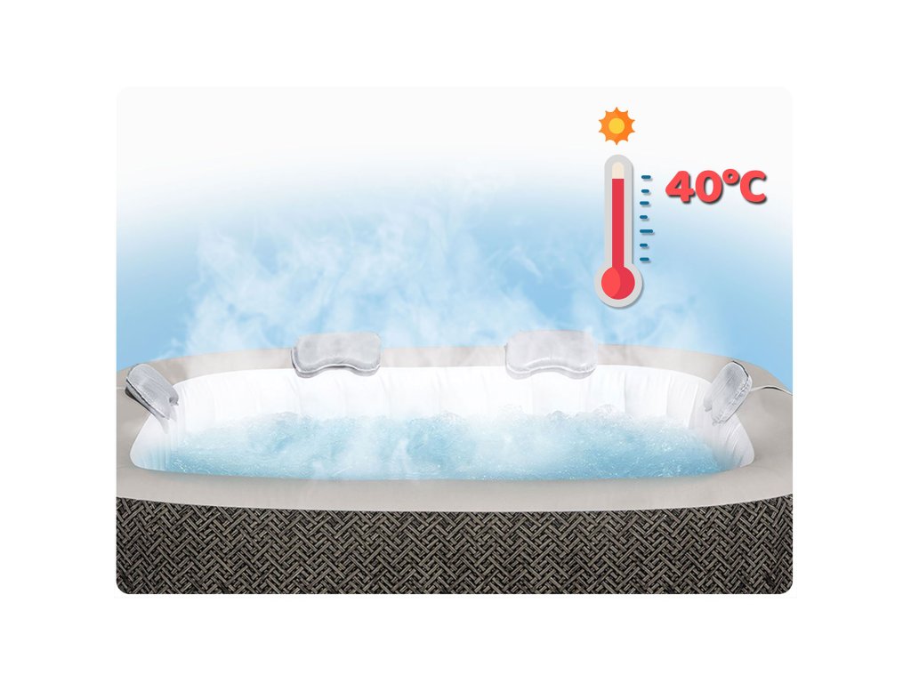 Víz 40°-ig melegítveMostantól saját privát SPA-jában a víz kellemesen meleg lesz, amikor csak szeretné.