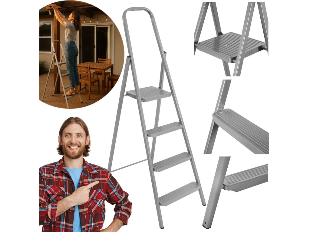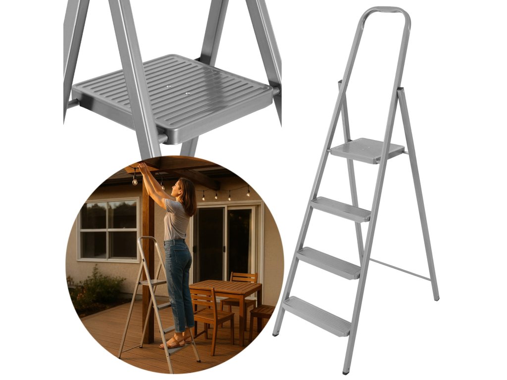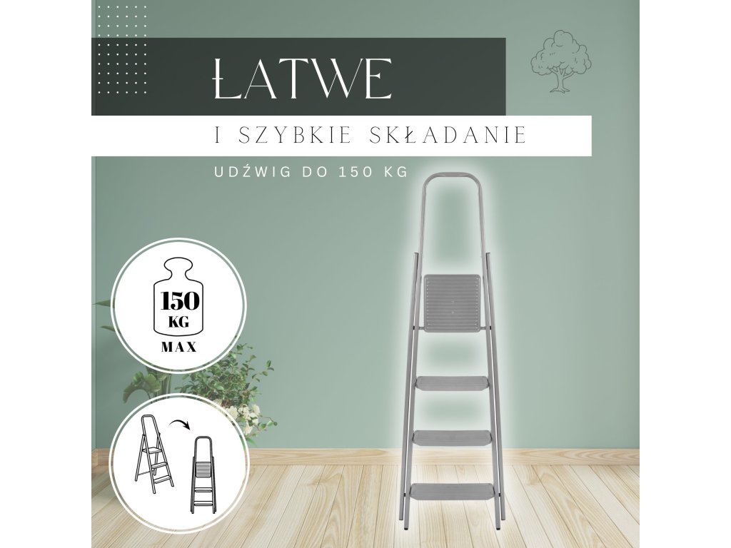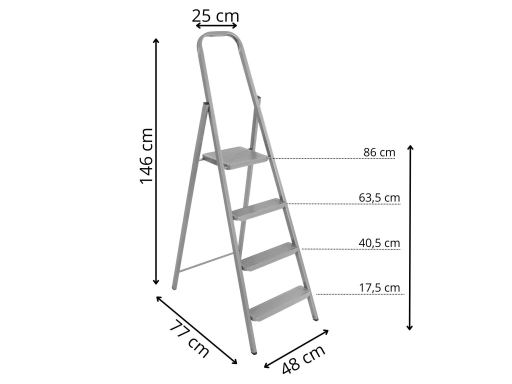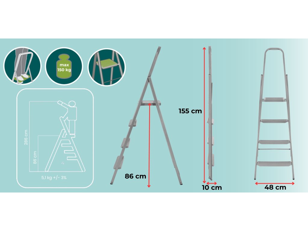- Összecsukott létra méretei: 155 x 48 x 10 cm
