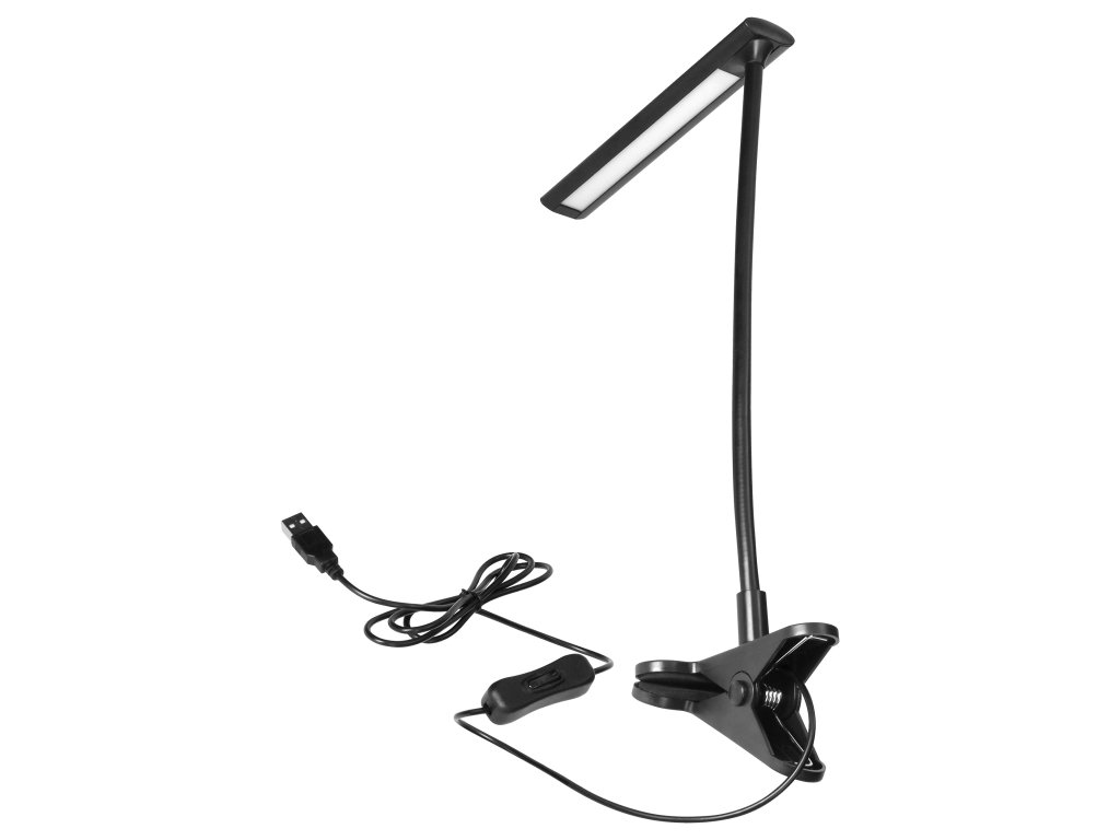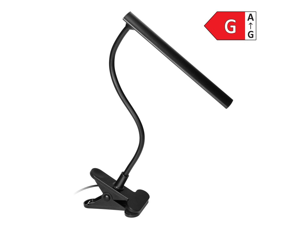 LED asztali lámpa csipesszel, 5W, 4000K, fekete