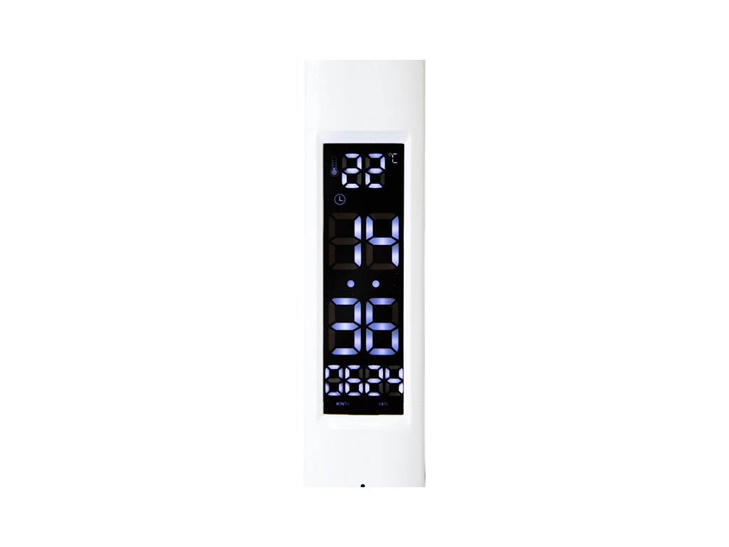 A lámpa elején egy jól olvasható LCD kijelző található, amely megjeleníti az aktuális időt, hőmérsékletet és a hét napját – mindent, amire szüksége lehet kéznél van. Ezért a BLOW LB-24 lámpa ötvözi a hasznossági funkciókat az esztétikával. A fehér, minimalista ház a digitális kijelzővel együtt modern jelleget kölcsönöz neki, amely illeszkedik bármilyen belső térhez – az irodától a diák szobájáig.