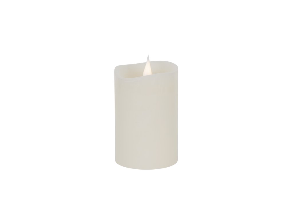 A modern LED-es gyertya szinte ugyanúgy néz ki, mint egy valódi gyertya. A LED fénye finoman tompul és világosodik, hogy utánozza a valódi láng pislákolását. A gyertya természetességét a viaszbevonat is kiemeli a jellegzetes égett szélekkel.
