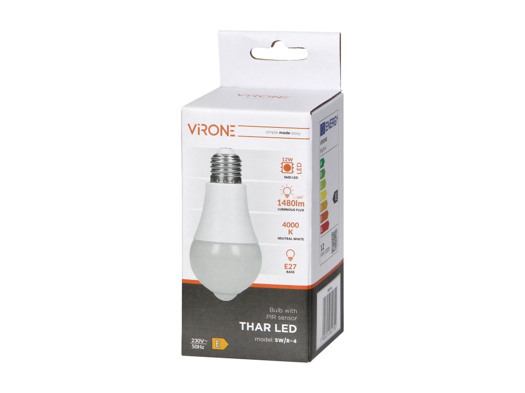 A LED izzó 12W PIR érzékelő 1480lm 4000K kiváló választás mindenki számára, aki hatékony világítási megoldást keres, amely hangsúlyt fektet a megtakarításra, kényelemre és a környezettudatosságra. Szerelje fel otthonát vagy irodáját ezzel az intelligens világítással, és élvezze a minőséget, amelyet ez minden belső tér számára nyújt.