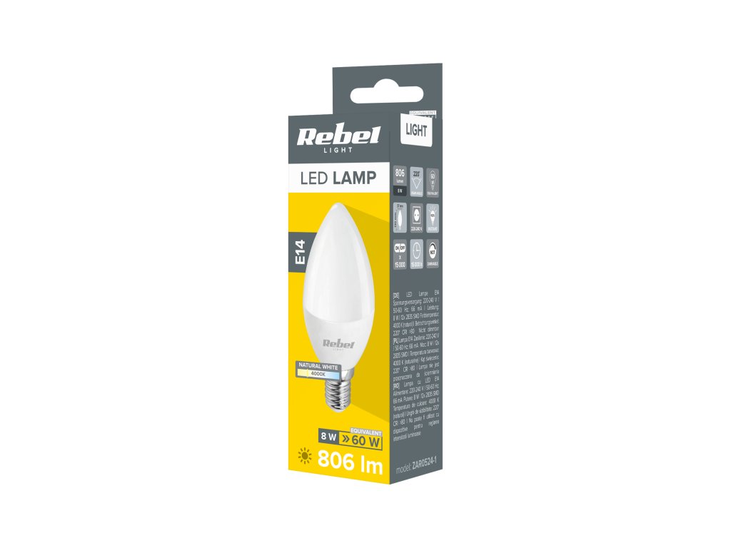 LED izzó 8W E14 4000K 230V ZAR0524-1Műszaki paraméterek: