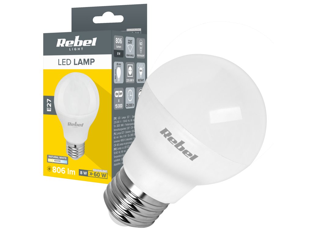 LED izzó E27 8W E27 4000K 230V ZAR0518-1Specifikációk: