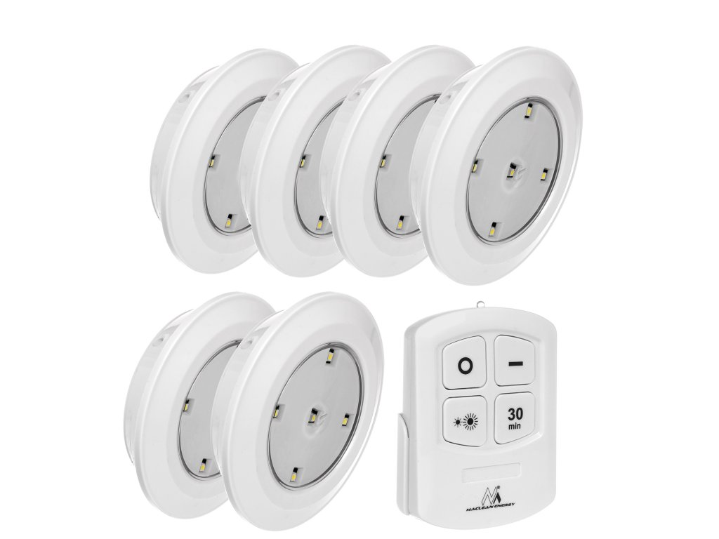 Maclean Energy 6 darabos LED-es világítótest készlet távirányítóval 3xAAA elemmel MCE165 6 darabos hordozható, vezeték nélküli LED-es világítótest készlet praktikus használatra.