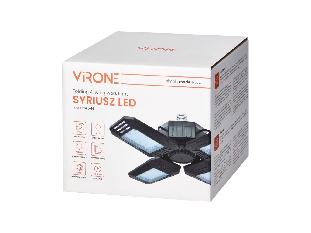 A 72W E27 4000K 6480lm összecsukható LED lámpával tökéletes világítást érhet el bármely helyiségben. A teljesítmény, a dizájn és a takarékos technológia kombinációja tökéletes megoldássá teszi ezt a terméket világítási igényeihez. Hagyja, hogy lenyűgözze a fényesség és hatékonyság, amelyet ez a LED lámpa nyújt.