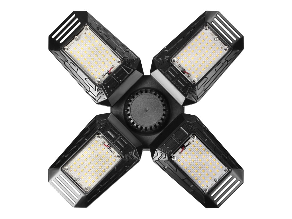 - Teljesítmény: Az összecsukható LED lámpa nagyon magas, akár 6480 lumen fényáramot biztosít, ami nagyobb helyiségekben is elegendő világítást garantál.
