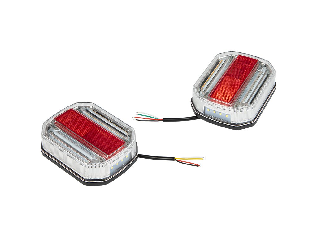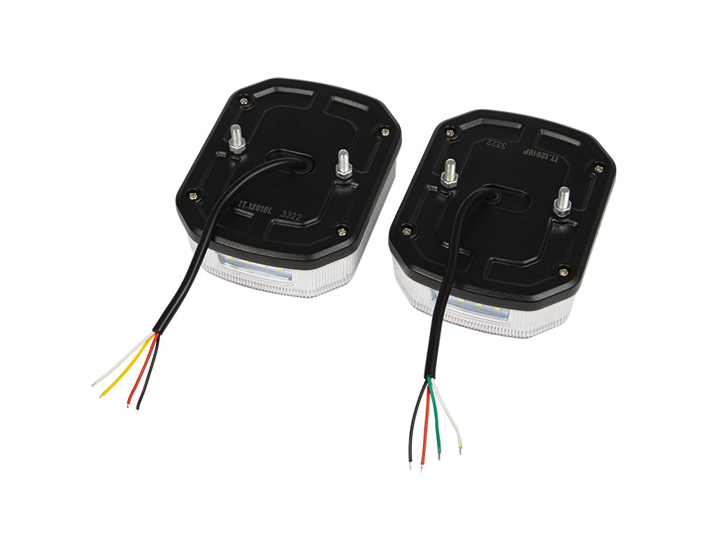 Irányjelzőből, jelzőfényből, féklámpából és rendszámtábla világításból álló kombinált lámpa . Alámpa felszerelhető pótkocsik, mezőgazdasági járművek, építőipari járművek, személyautók, furgonok vagy vontatók bal és jobb oldalára.